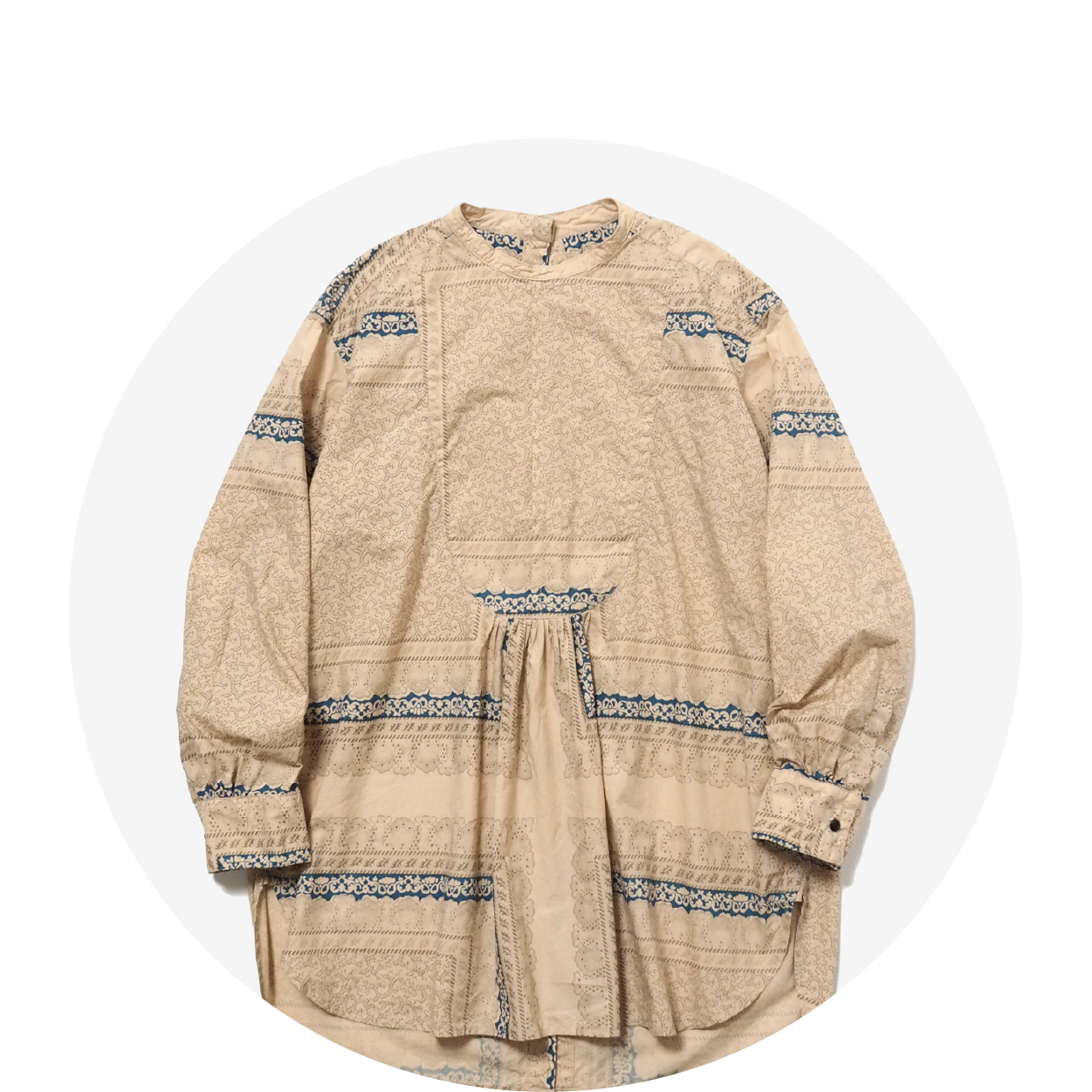 maison de soil / HANDWOVEN HEAVY COTTON PLAIN FRILL COLLAR BACK PINTUCK SHIRT [BEIGE/BLACK SELVAGE]