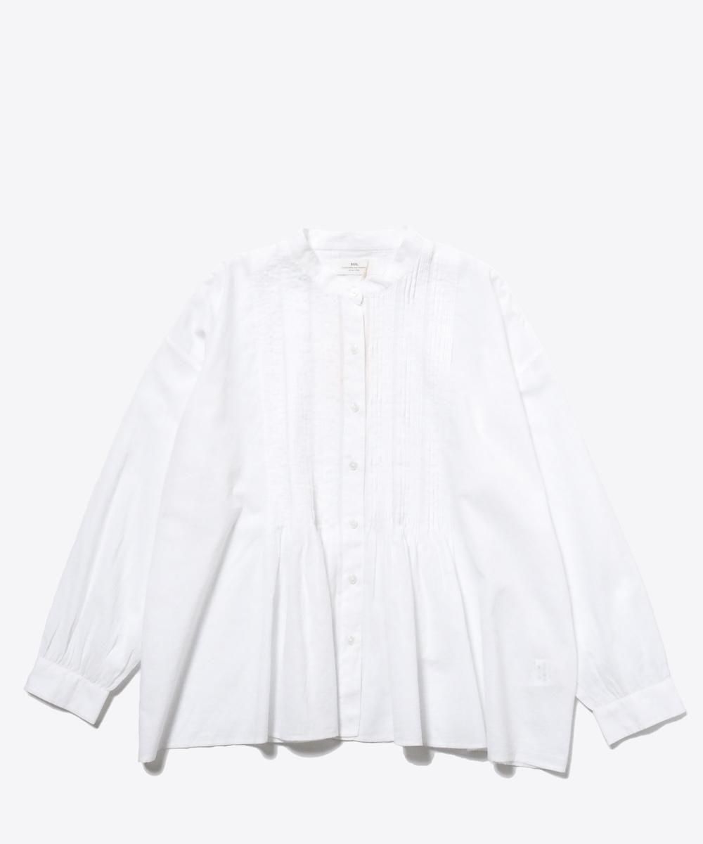 SOIL / 60s CAMBRIC PLAIN BANDED COLLAR PINTUCK SHIRT [WHITE]