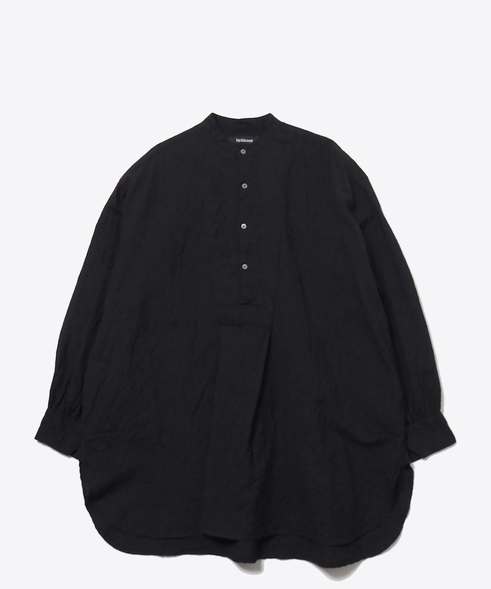 SOIL / 60s CAMBRIC PLAIN BANDED COLLAR PINTUCK SHIRT [BLACK]