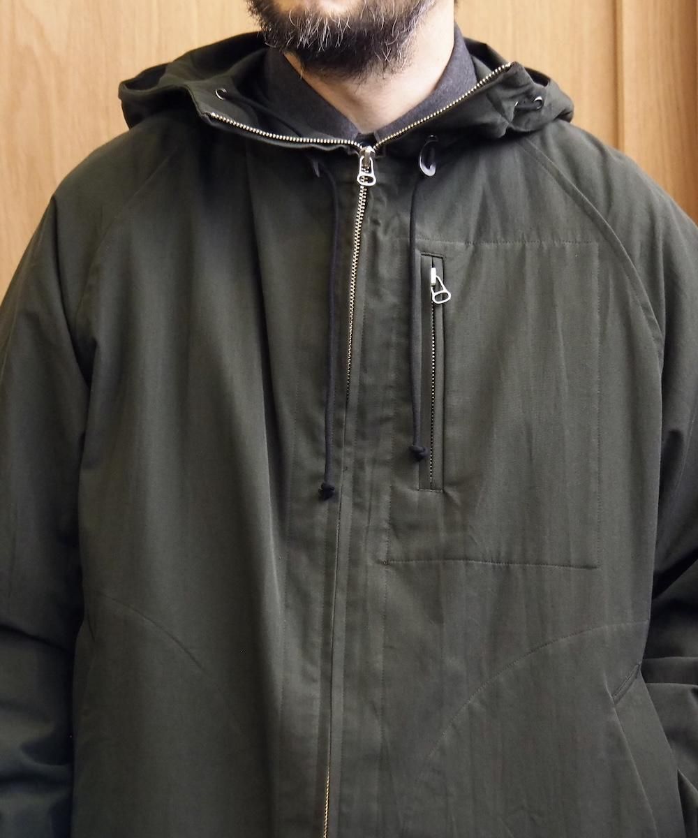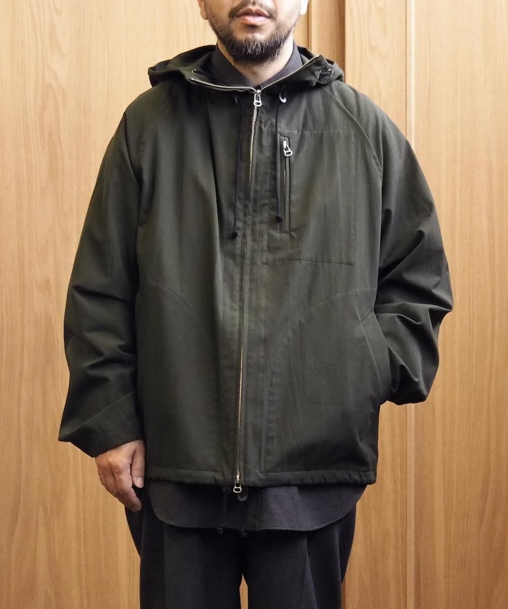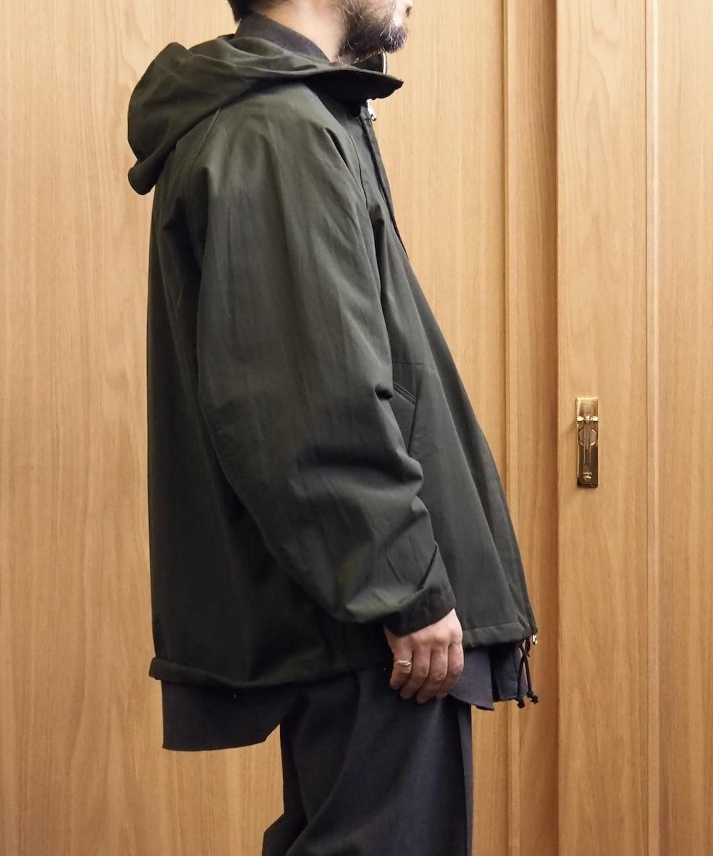 クラシックなミリタリーウェアをインスピレーションに製作した ZIP フードジャケット。 素材には尾州地方の歴史ある機屋で旧式の織機で製織したオリジナル素材を使用。 超長綿を経緯ともに限界まで超高密度で織り上げた平織物。 超長綿の自然な光沢感を最大限に引き出し、無骨さと奥ゆかしさを共存させた表情が特徴です。 製織後に機械を使用せず、長い時間をかけて洗い・乾燥を施すことで、長年身に付けている古布のような馴染みの良い風合いを宿しています。