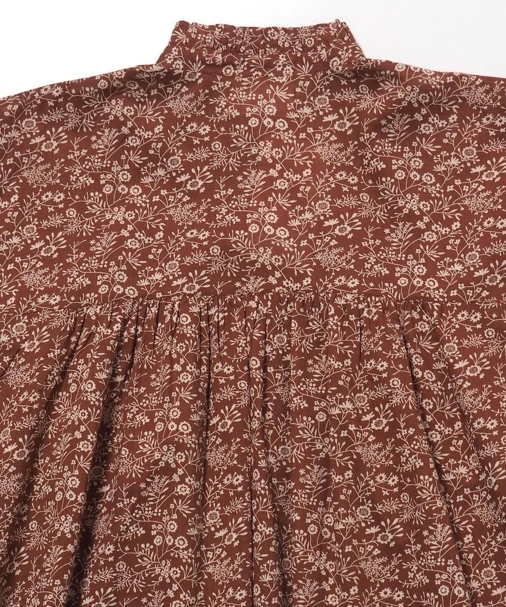 SOIL / COTTON SLUB SMALL FLOWER PRINT FRILL COLLAR SHIRT WITH GATHER [DEEP RED]
