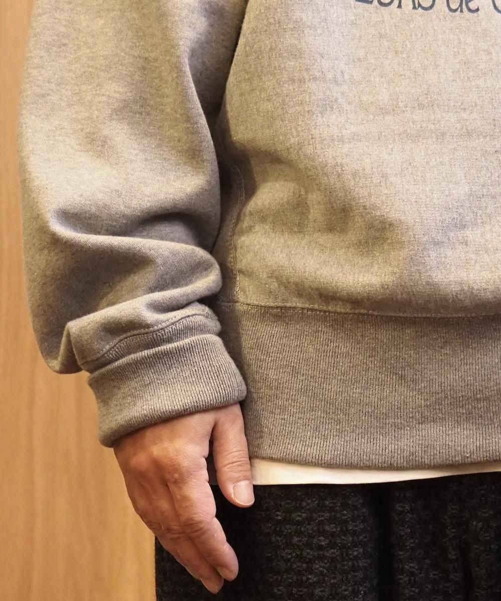 フランスであのスウェットシャツを作ったら,,,というアイデアで作成したスウェット。 フランスで毎年旅をする中で印象に残った友人の言葉や体験をプリントにしています。 フランスバスク地方で糸の染色・編み立て・カット縫製まで全ての工程を同じ工場で一貫して行っています。 古着に見られるような身幅の広いボックスシルエット。 裏起毛はとても柔らかく優しい肌当たりで、格別の着心地を体感していただけます。