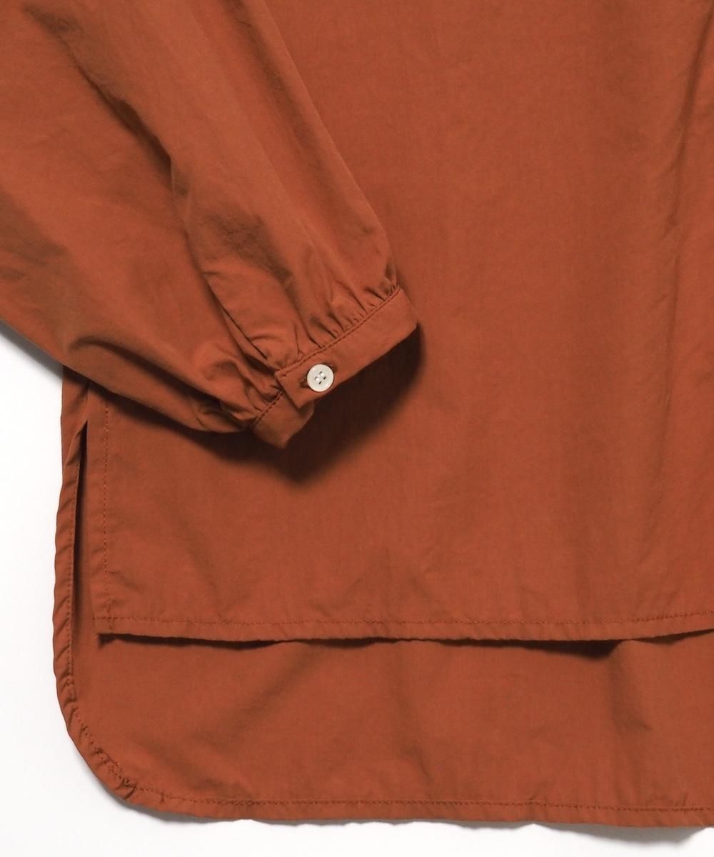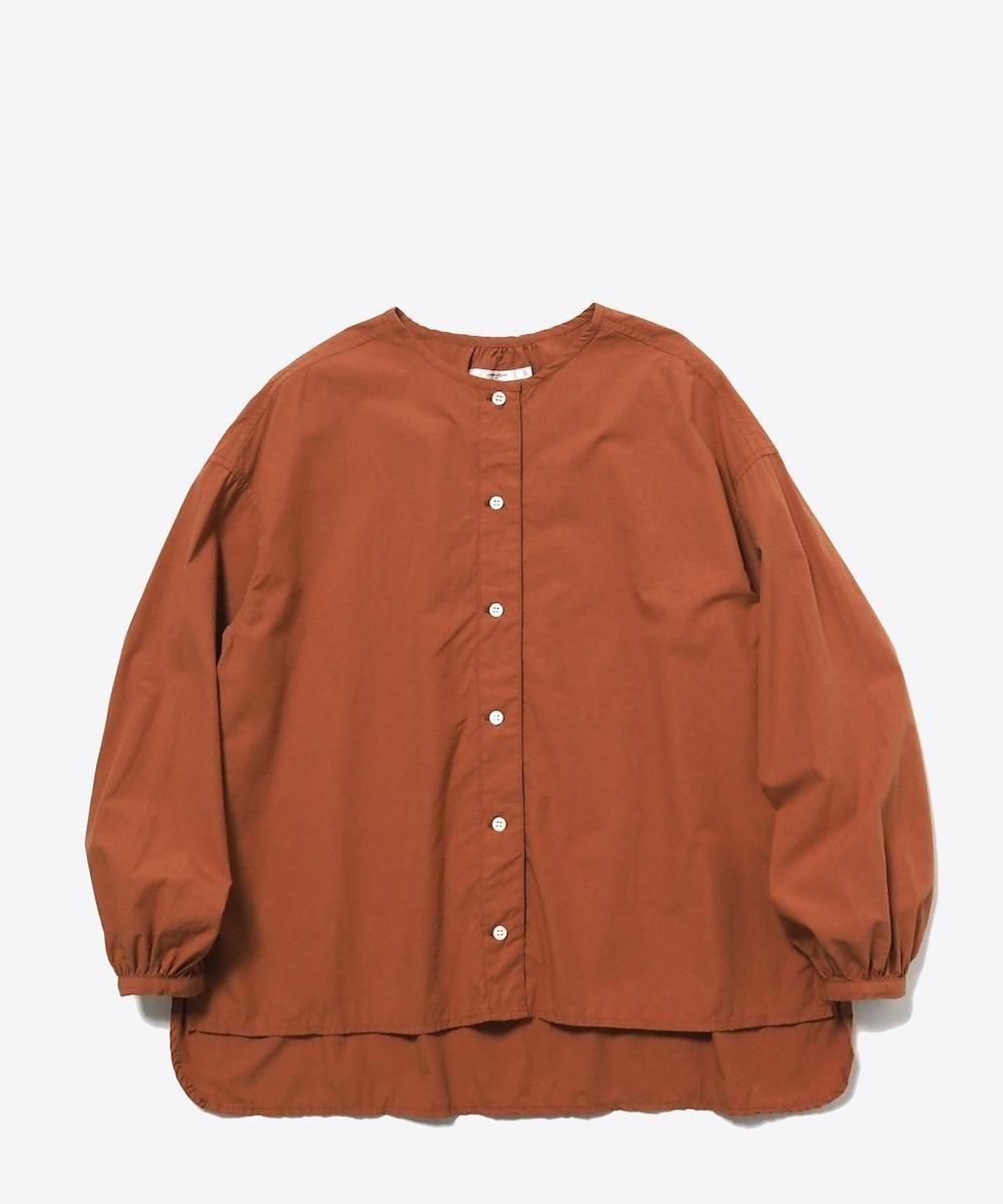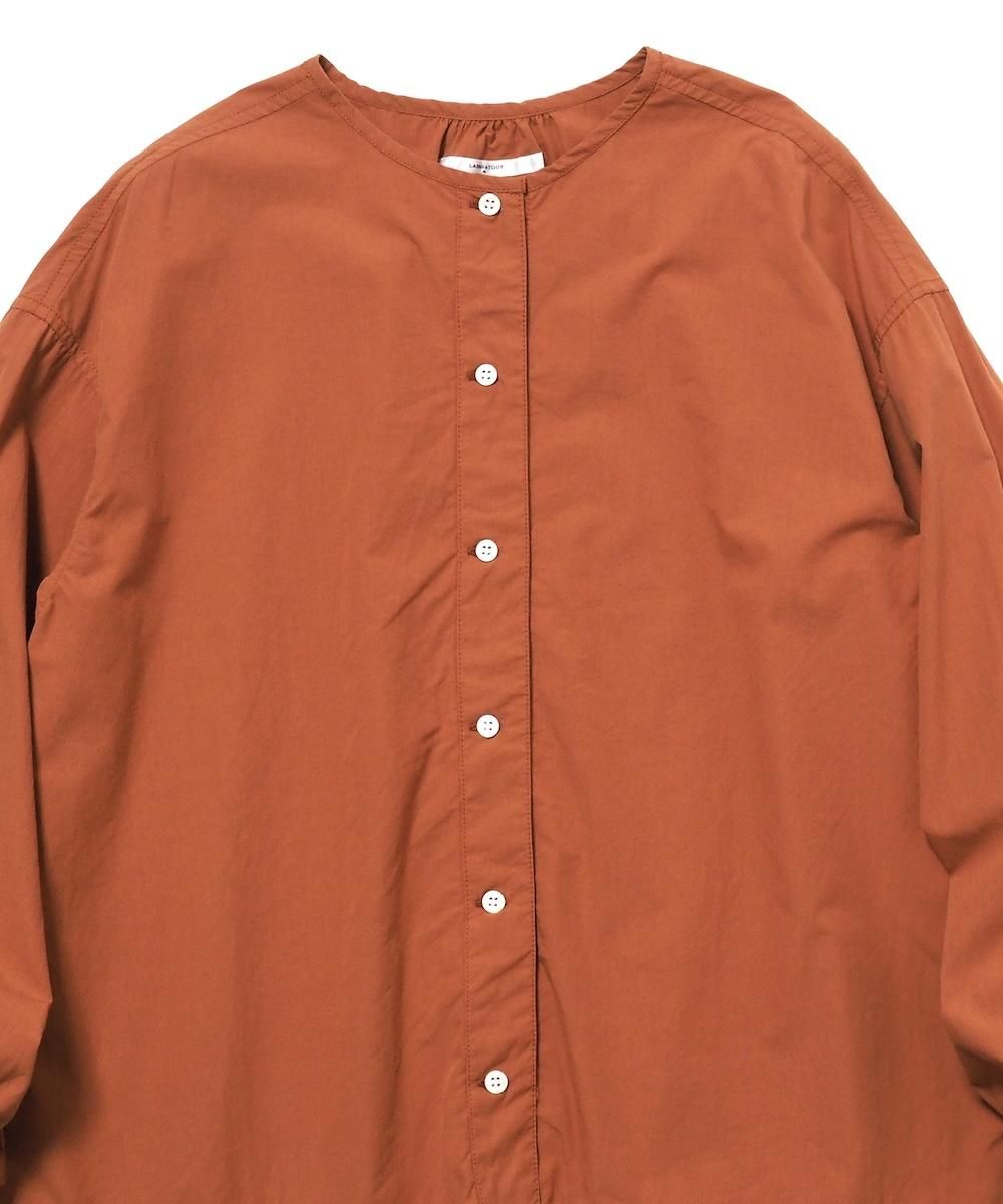 フランスのワークウェアのようなイメージで日常着として活躍するノーカラーシャツ。 なめらかな表面の質感と心地良いハリのあるタイプライター生地で、シーズン問わず着回しのできる一枚です。