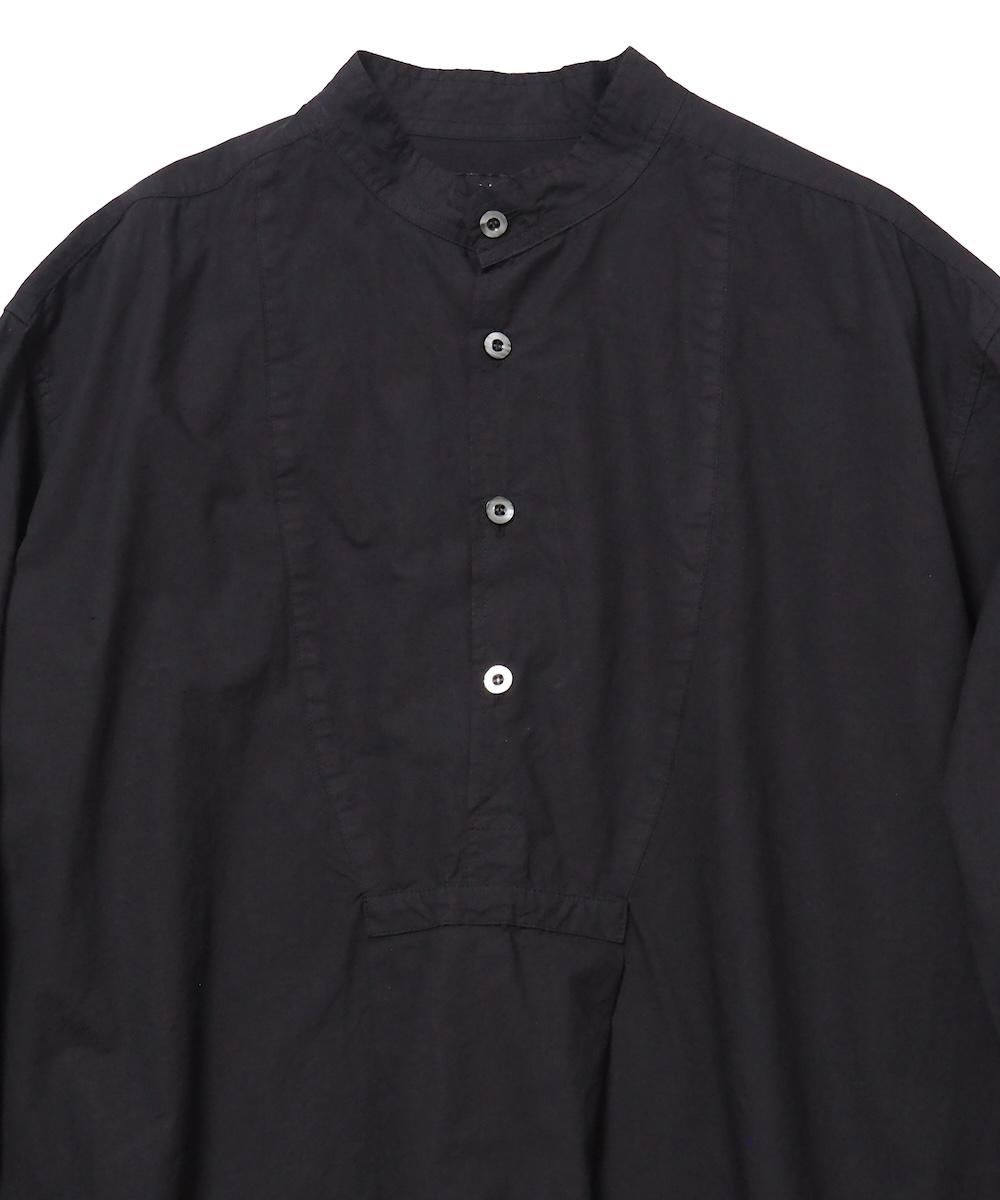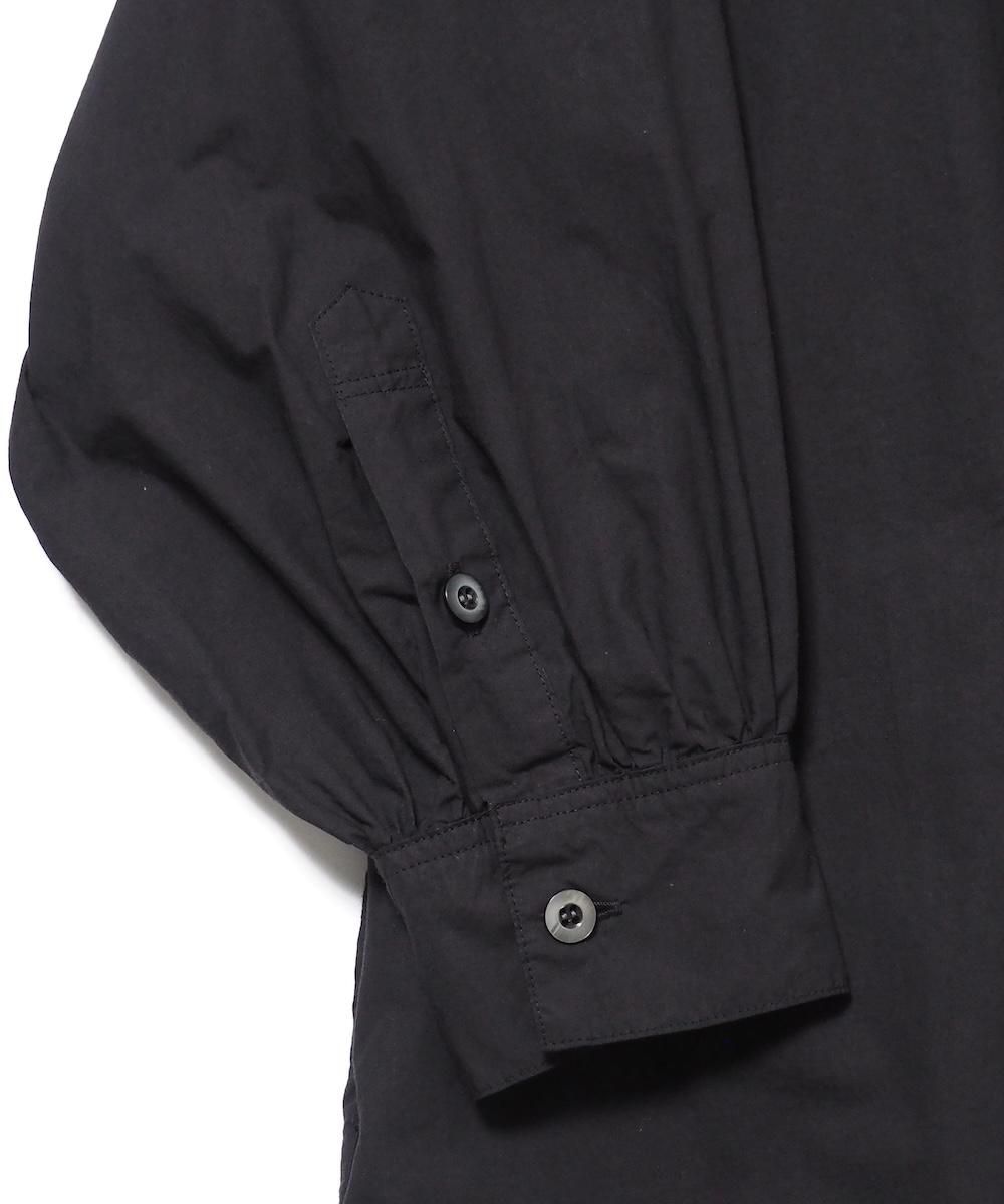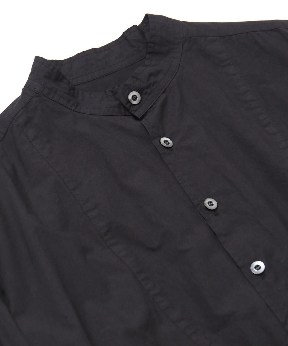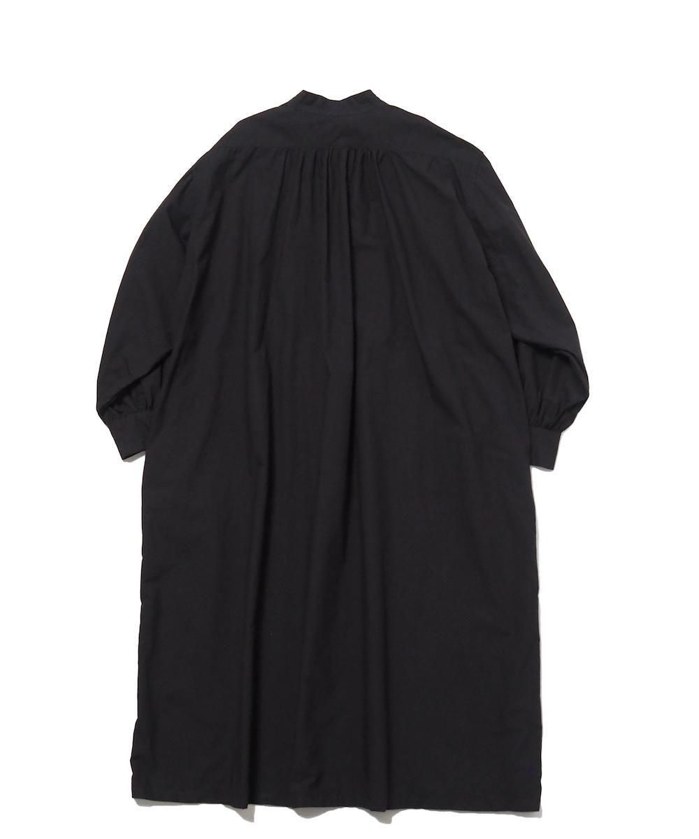 フロントの胸当てや狭く設定された後ろのヨーク切り替えが、ヴィンテージのドレスシャツを彷彿とさせるシャツワンピース。 ハリのあるコットンリネンのタイプライター素材。 経糸になめらかなコットンのコンパクトヤーン、緯糸にコットンリネンの混紡糸を使用し、高密度に織っているため、ハリのある風合いが良く出ています。 さらに製品染めをすることで洗いざらしの似合うカジュアルな雰囲気に仕上がっています。