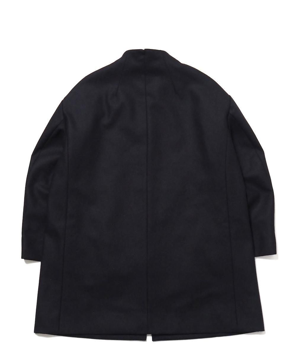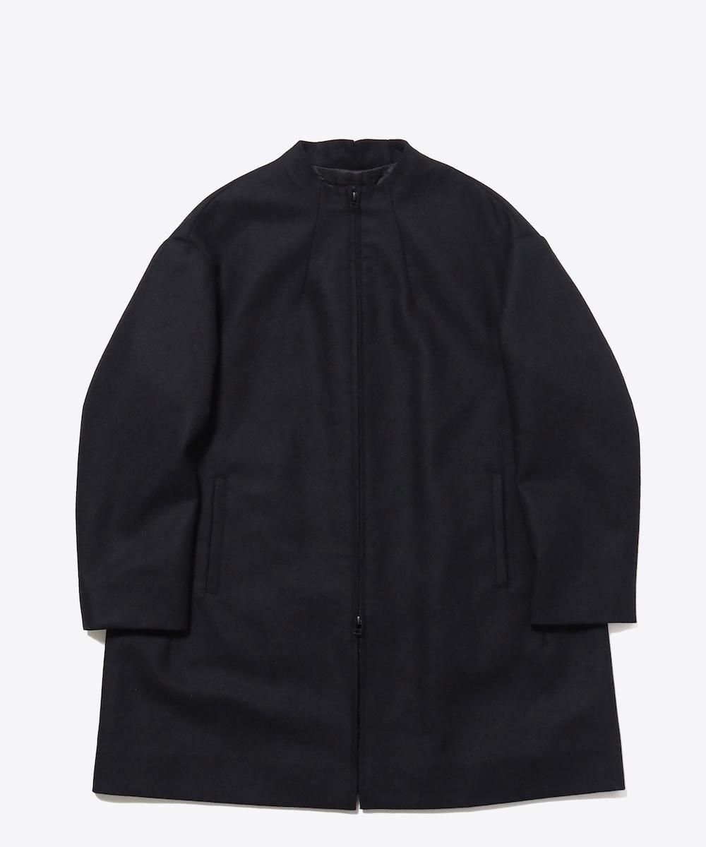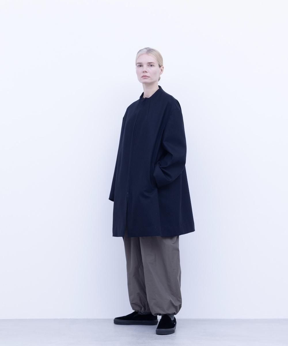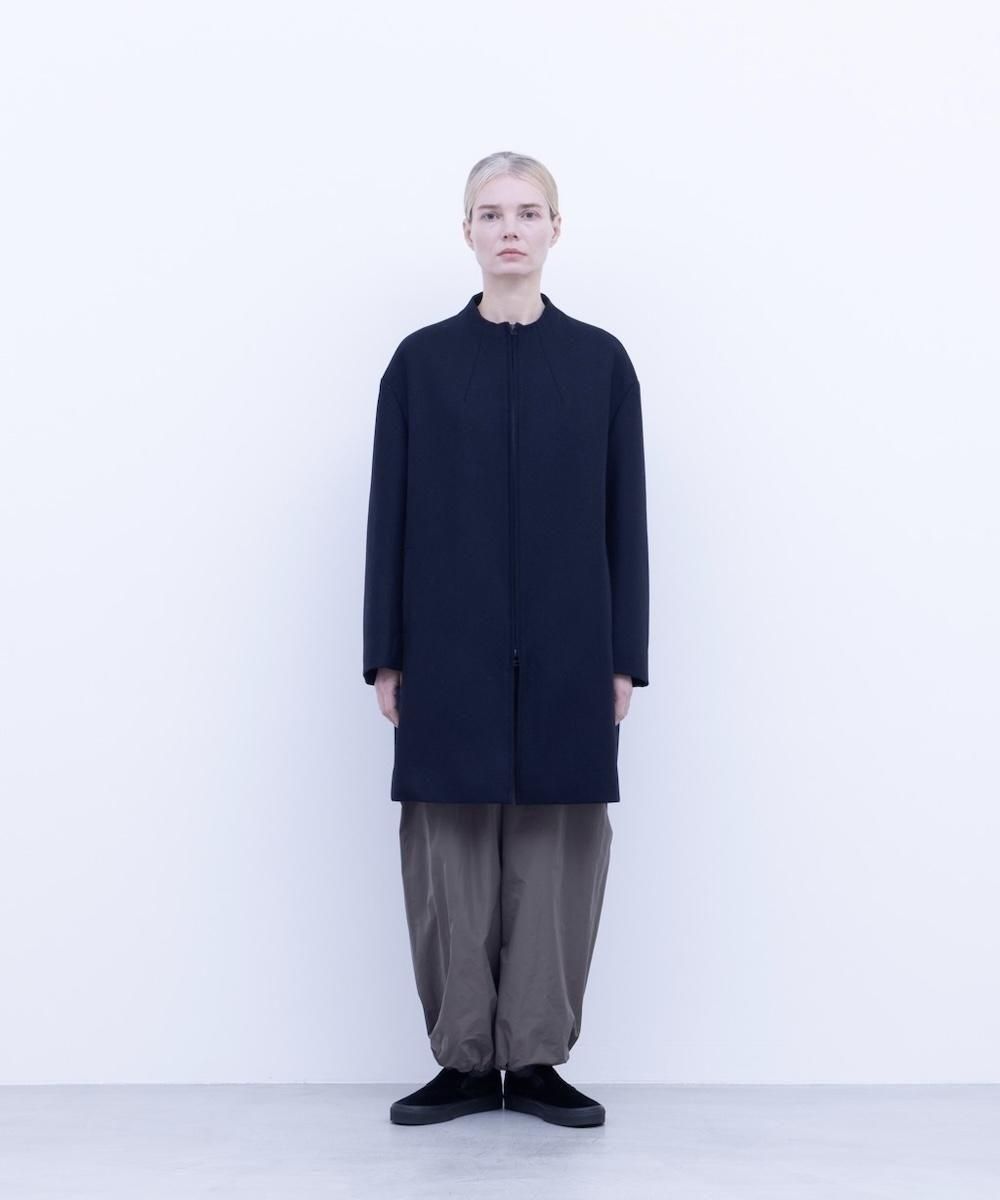 ミニマルなデザインながらディテールにデザインを効かせたボトルネックコート。