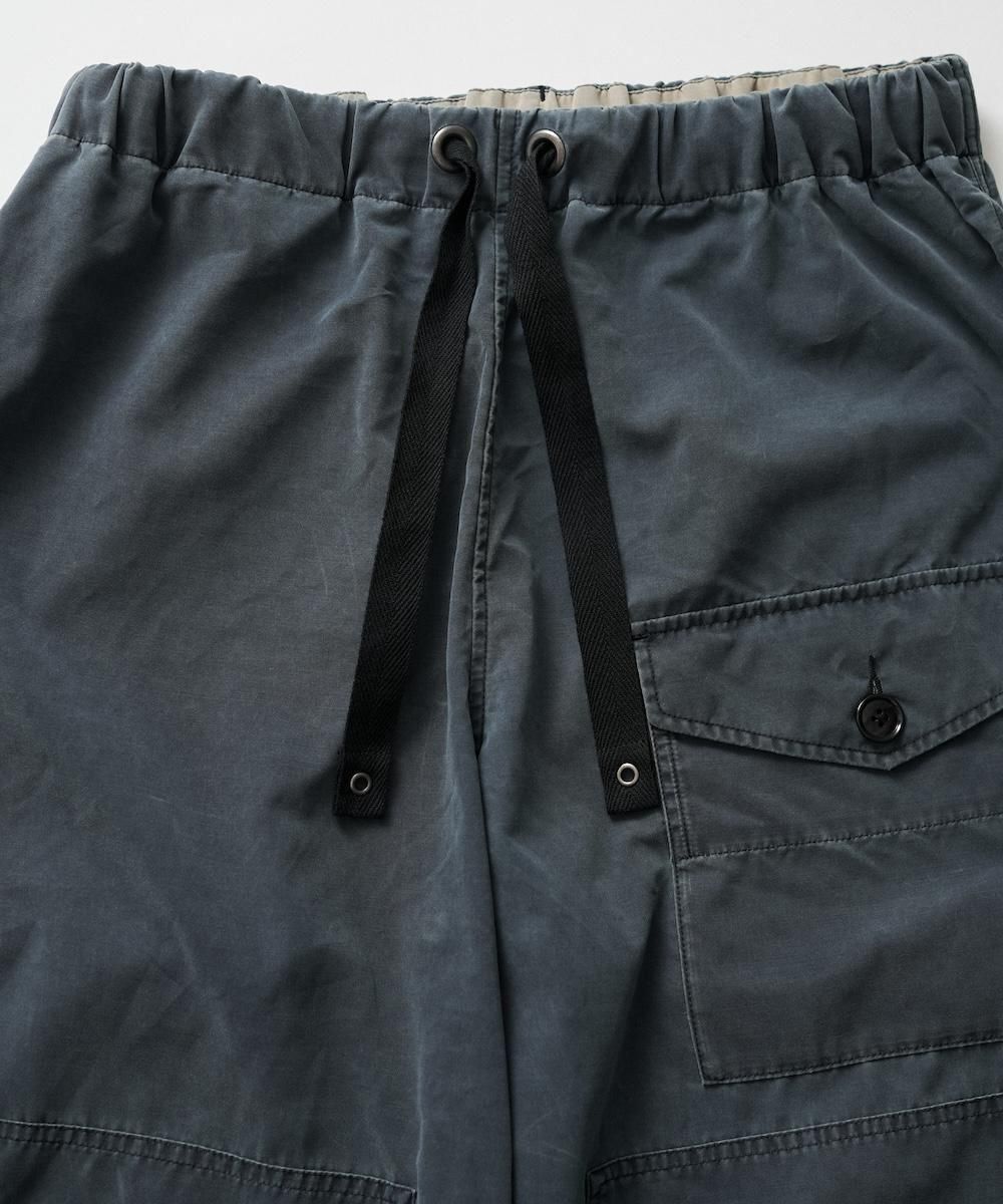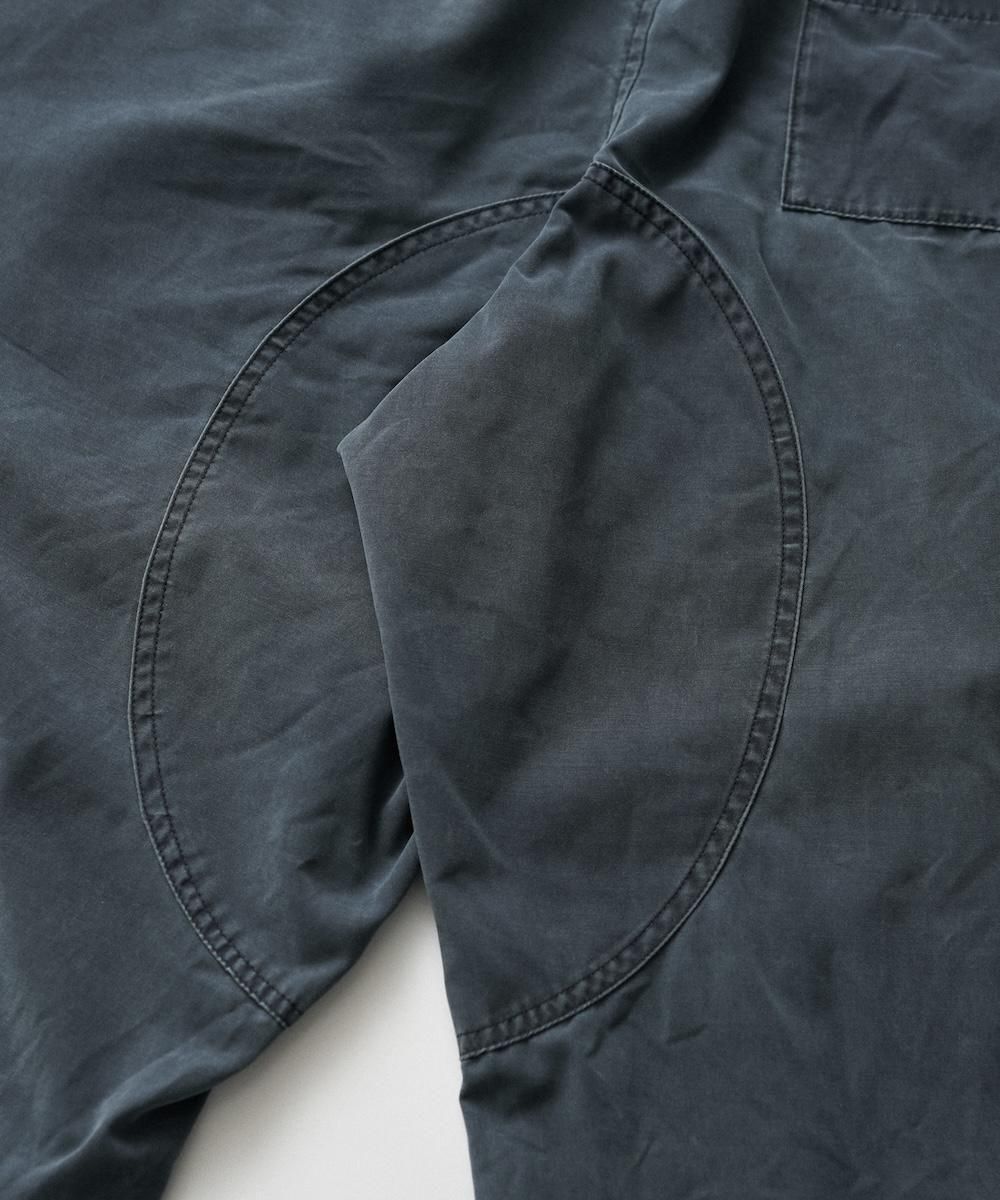 1960~70年代に採用されていたロイヤルネイビー(英国海軍)のベンタイルのトラウザーがベース。 パンツの上から履くオーバーパンツとして製作されたことによる、ウエストのドローコードやフラップポケットなどの特徴的なディテールが特徴です。 生地はコットンとポリエステルの混紡素材を採用。 顔料染めを施した生地にバイオウォッシュ加工を加え、ヴィンテージの風合いを表現しています。