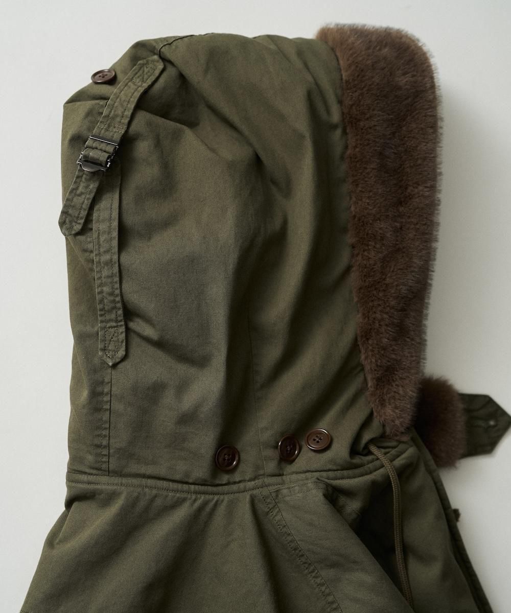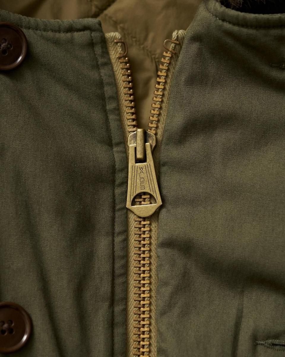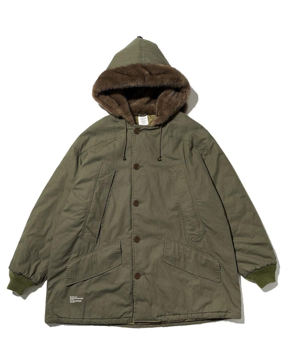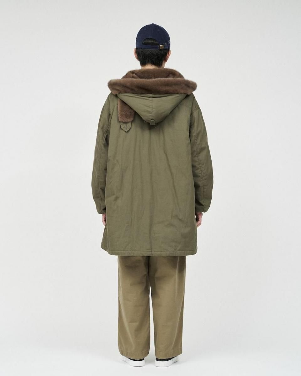 1943年~1944年の2年間のみ製作された US ARMY の B-9 フライトジャケットは、 極寒の地域での着用を目的に開発されており、 キルティングのダウンライナーや、フード・チンストラップのボアにより優れた防寒性を誇ります。 デイリーユースでの使用のために中綿は軽いものを採用。 表地も中綿とのバランスを考慮し、オリジナルを踏襲しつつ密度を落として見た目に反して軽い仕上がりにするなど、現代的なアップデートを加えています。