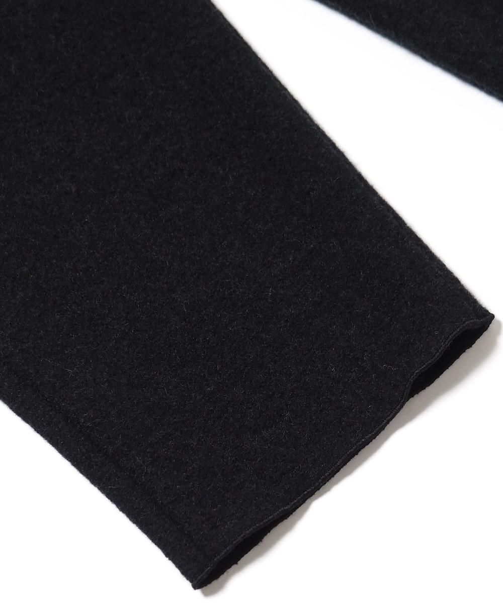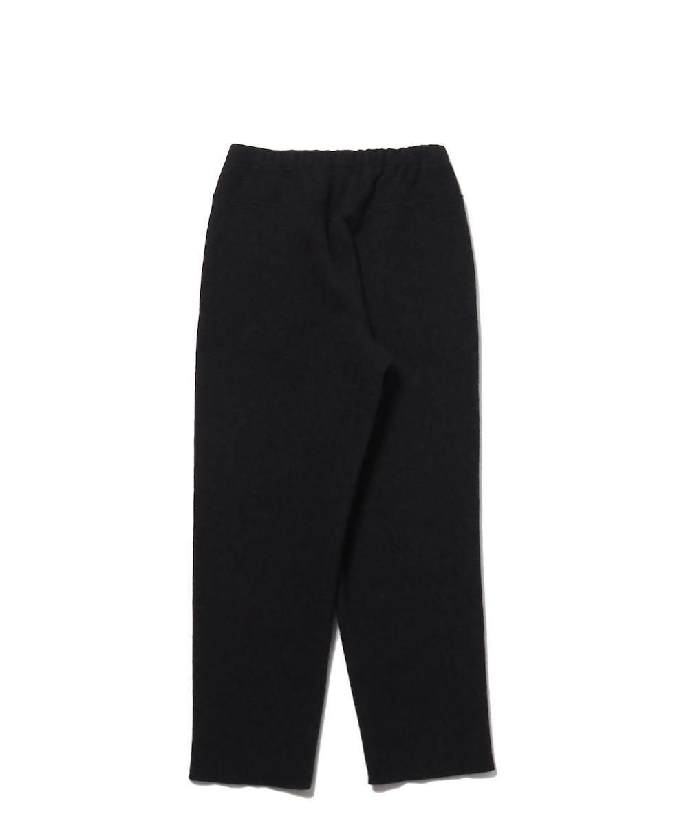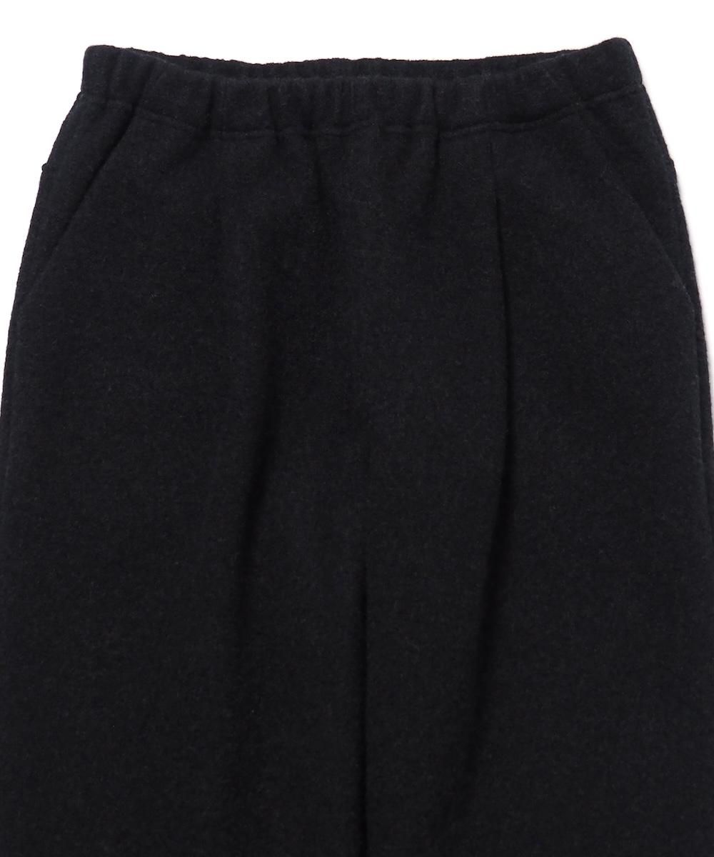 evam eva 定番のプレスウールイージーパンツ。 柔らかなウール糸で編んだニット地を圧縮することで、しっかりとした生地に仕上がっています。 程良いゆとりがありながら足元にかけてすっきりとした印象のテーパードシルエット。 ふっくらと優しい肌当たりで、軽い履き心地のため、寒い季節におすすめです。 生地の暖かさをしっかりと感じられるこのパンツは、特にリピーターの多い大定番アイテムです。