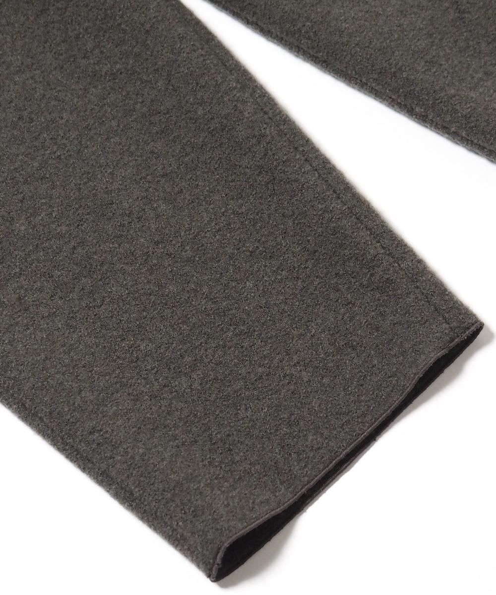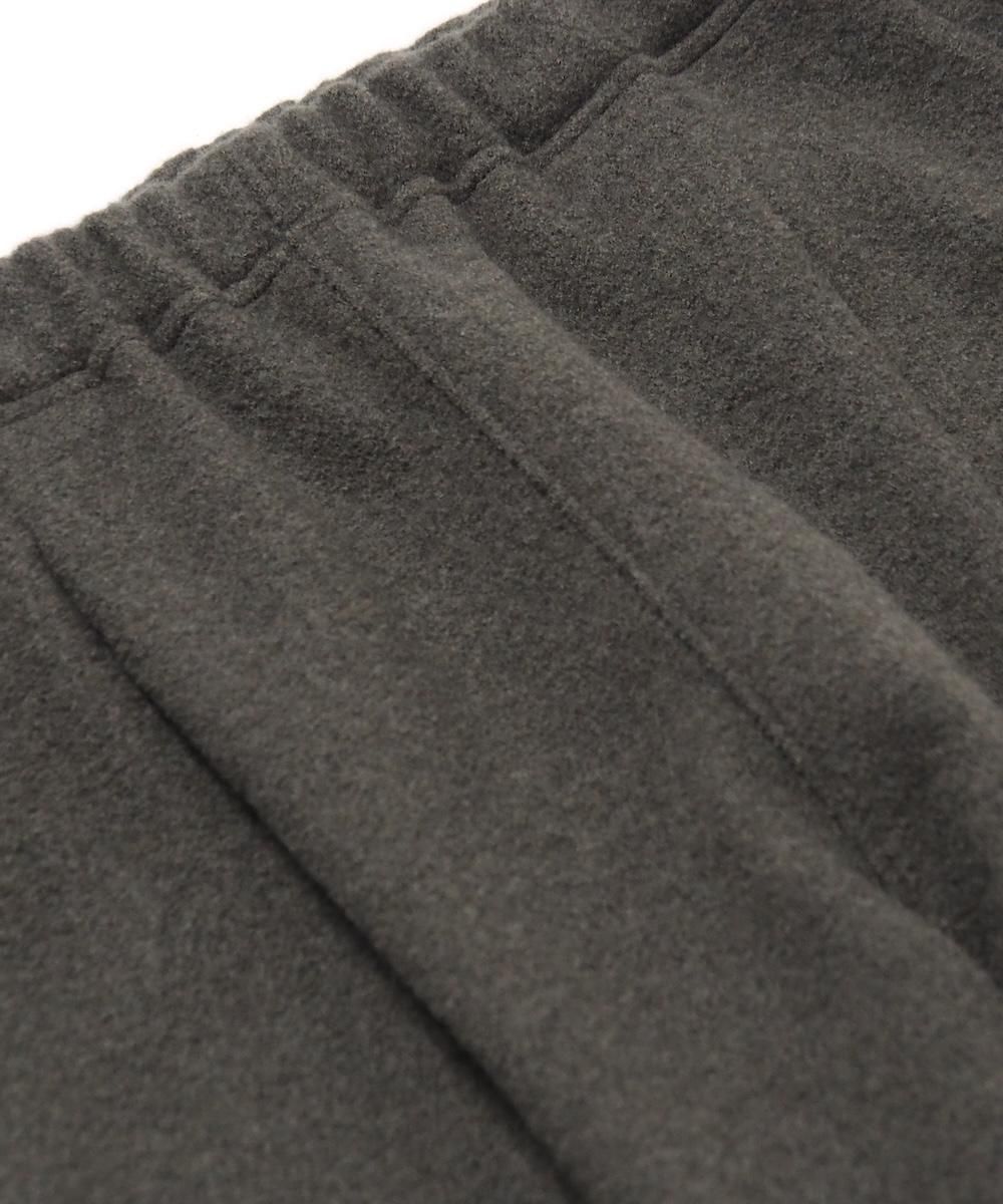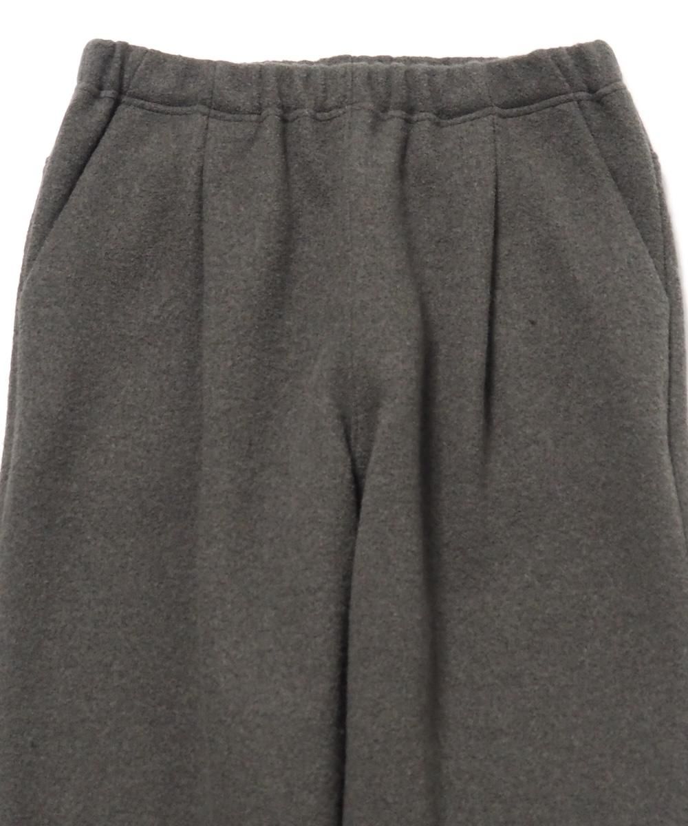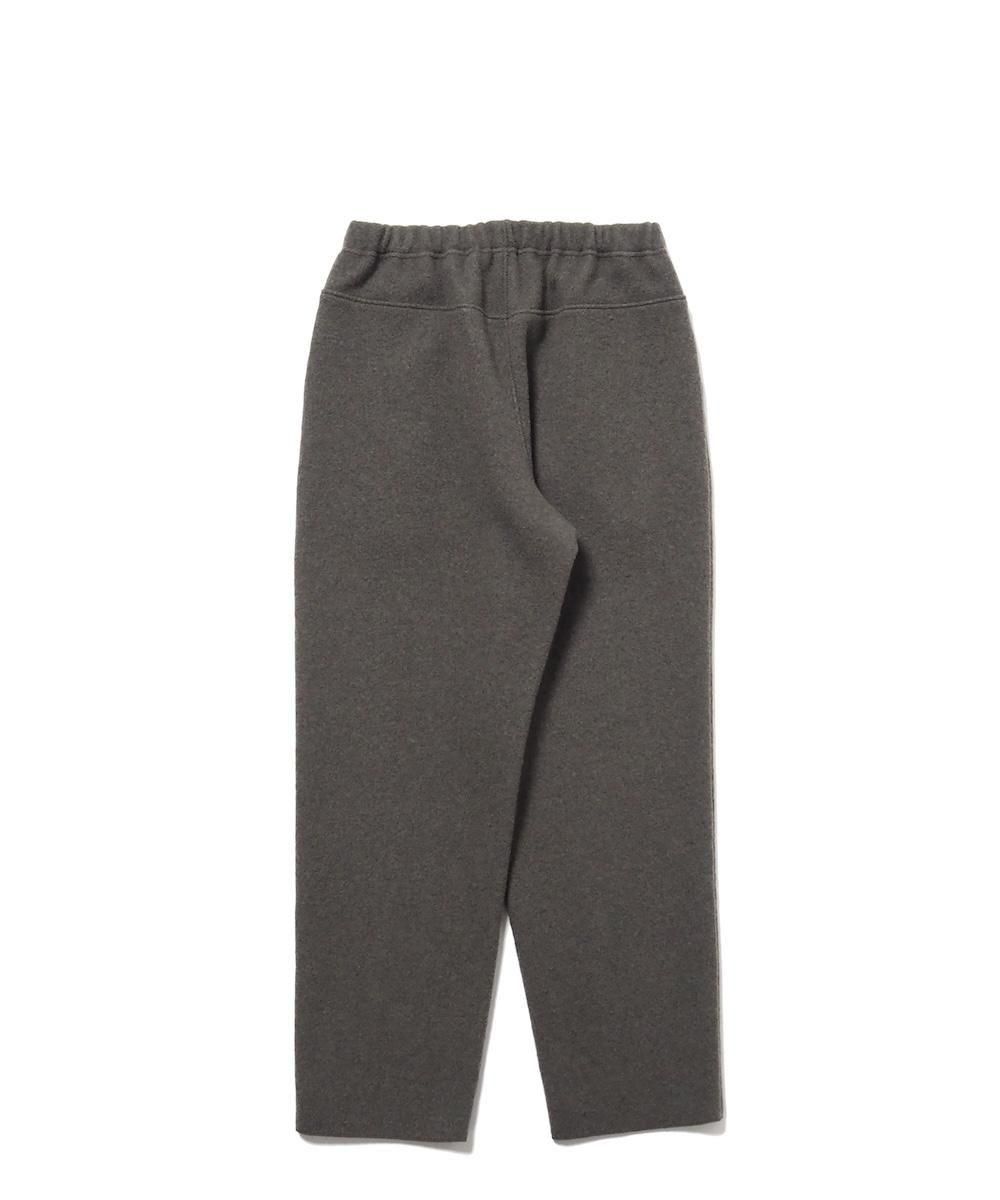 evam eva 定番のプレスウールイージーパンツ。 柔らかなウール糸で編んだニット地を圧縮することで、しっかりとした生地に仕上がっています。 程良いゆとりがありながら足元にかけてすっきりとした印象のテーパードシルエット。 ふっくらと優しい肌当たりで、軽い履き心地のため、寒い季節におすすめです。 生地の暖かさをしっかりと感じられるこのパンツは、特にリピーターの多い大定番アイテムです。