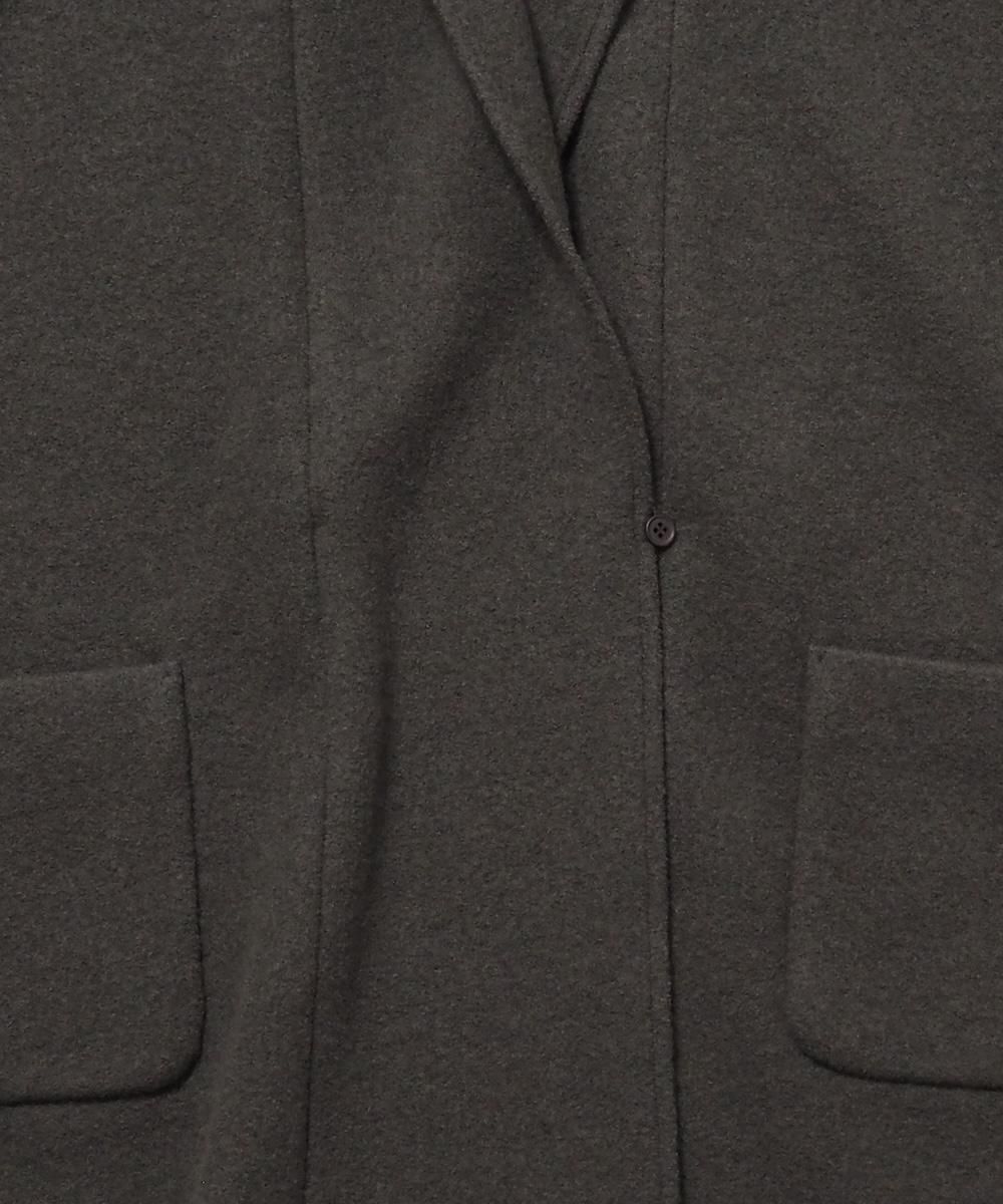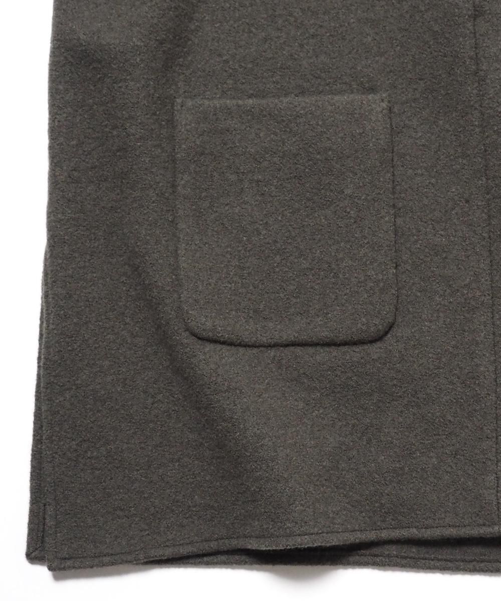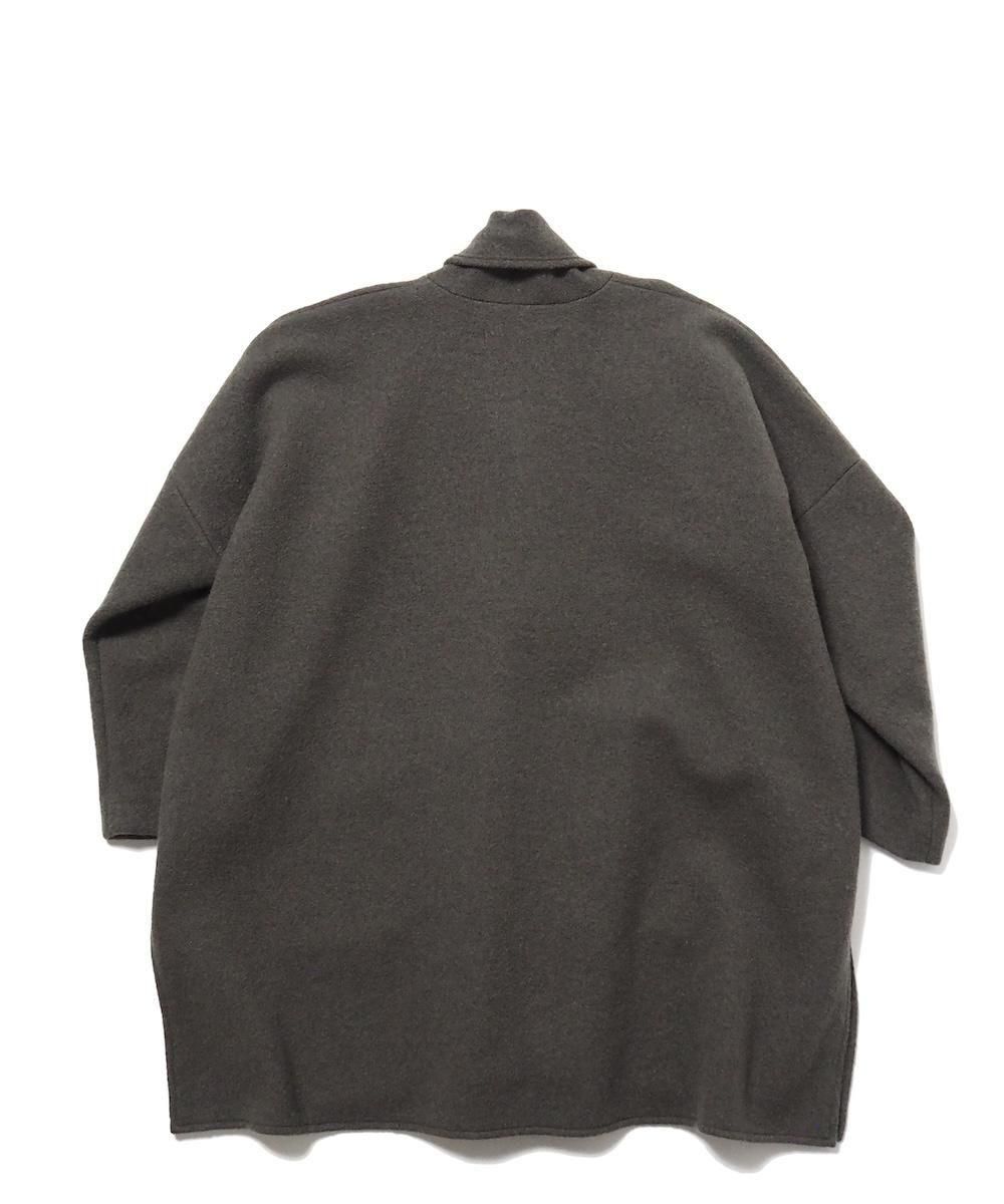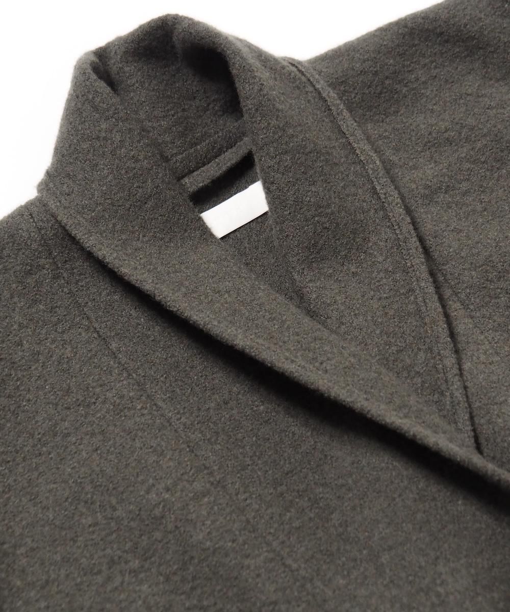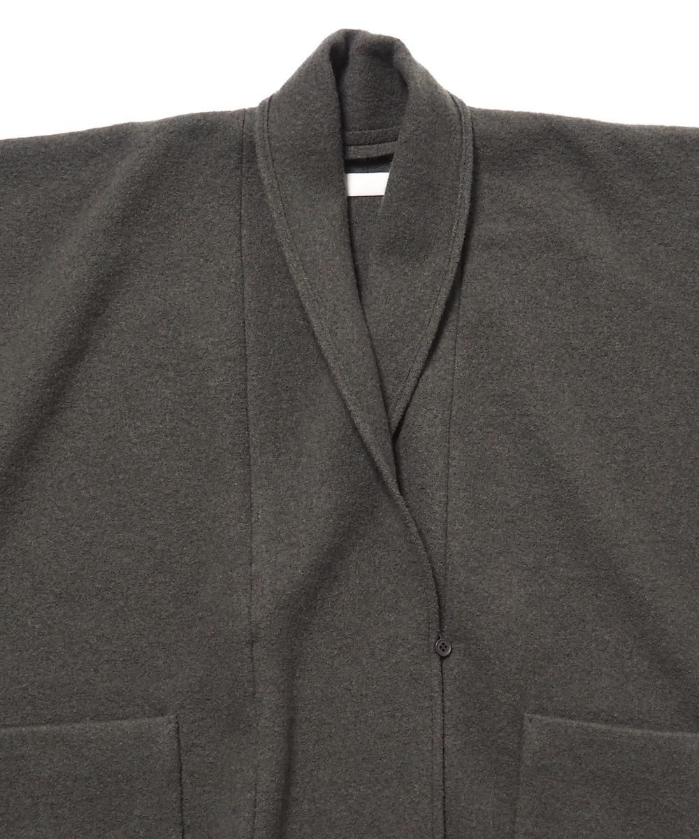 evam eva 定番のプレスウールを使用したゆったりと着られるローブ。 柔らかなウール糸で編んだニット地を圧縮することで、しっかりとした生地に仕上がっています。 ふっくらと優しい肌当たりで、軽い着心地のため、寒い季節におすすめです。 軽い羽織からアウターとしてまで、さまざまなシーンで着回しのできる一枚です。