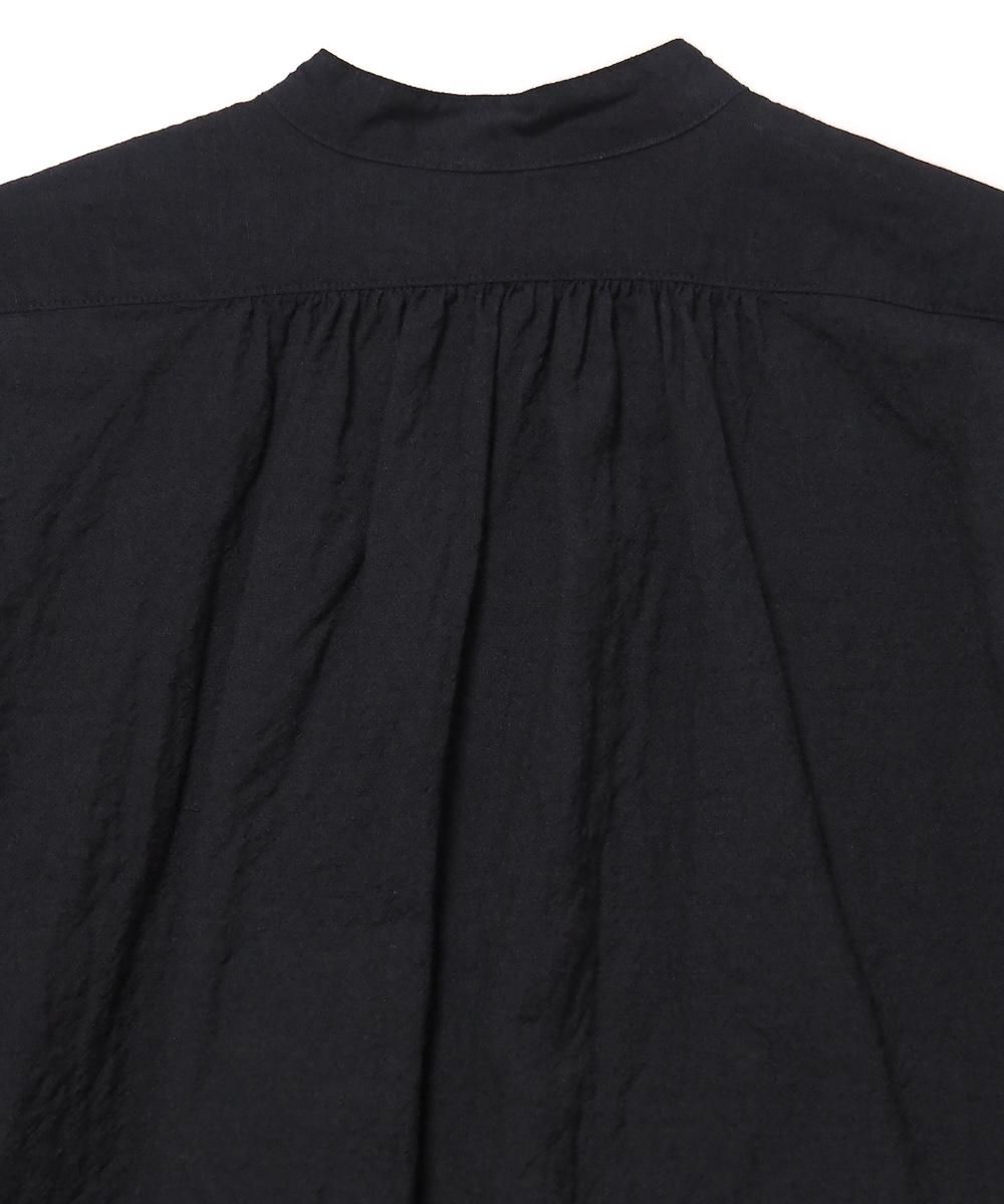 フロントの胸当てや狭く設定された後ろのヨーク切り替えが、ヴィンテージのドレスシャツを彷彿とさせるプルオーバーシャツ。 身巾や袖巾にゆとりを持たせ、デイリーに着用しやすいバランスに仕上げています。 素材にはドライな肌触りが特徴的なウールリネンの平織生地を使用。 世界三大毛織物産地と呼ばれる愛知県の一宮市で、長年の知識と技術により糸から生地になるまで一貫して生産されています。 さらに仕上げにタンブラー加工を施すことで、生地表面にしぼが生まれ膨らみのある表情に仕上がっています。
