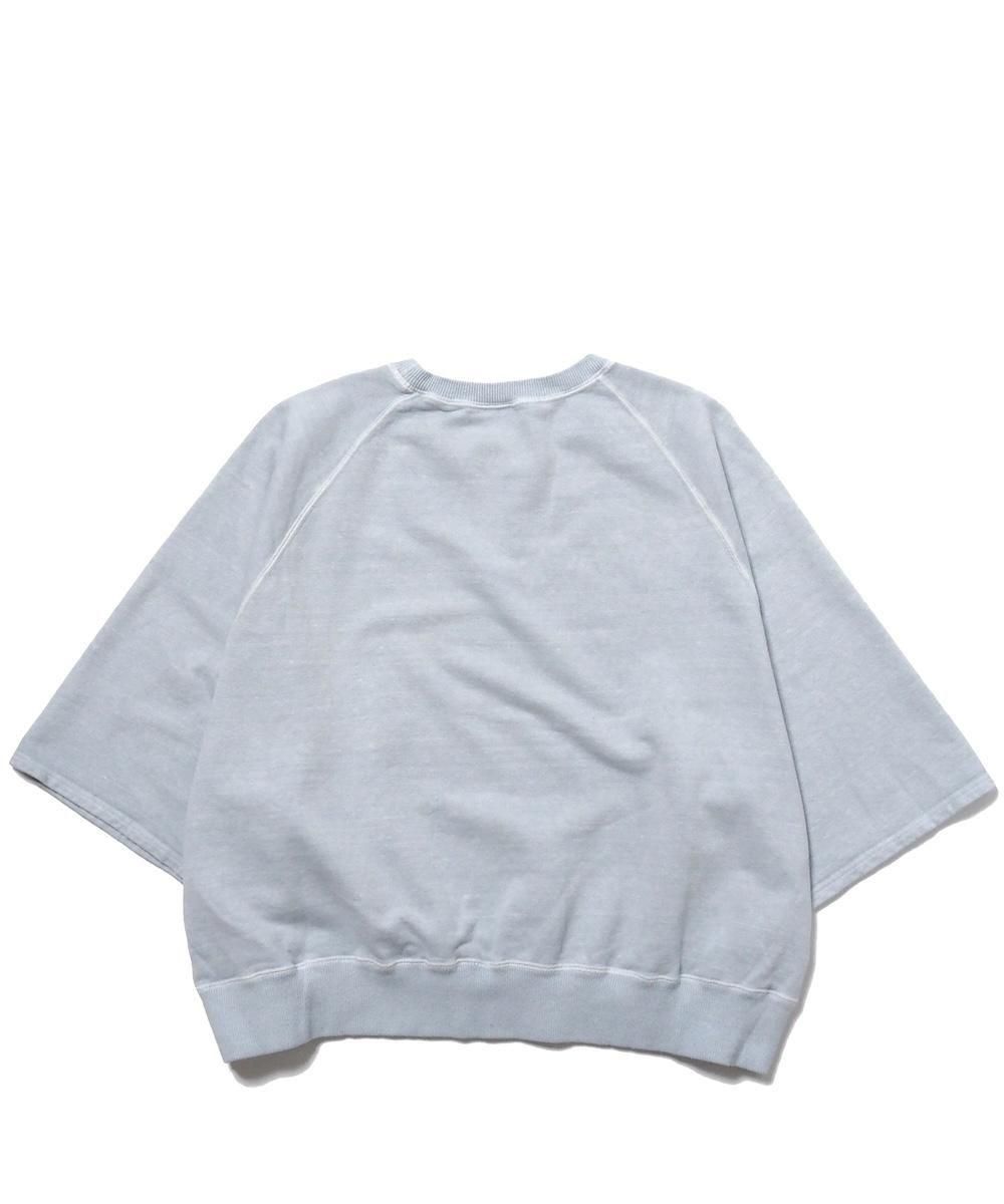 ゆったりルーズなシルエットで着回しの出来るハーフスリーブのスウェットTシャツ。 アメリカ産高級綿であるスーピマコットンの落ち綿を使用。 しっかりした肉感がありながら、着用時にストレスにならない柔らかい風合いが特徴です。 カラーはピグメント染めを施し、ナチュラルでラフな雰囲気に仕上がっています。 洗うたびに少しずつ変化していく色と風合いを楽しんでいただけます。