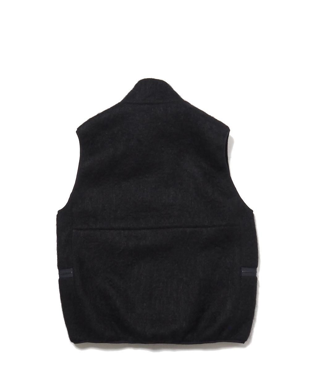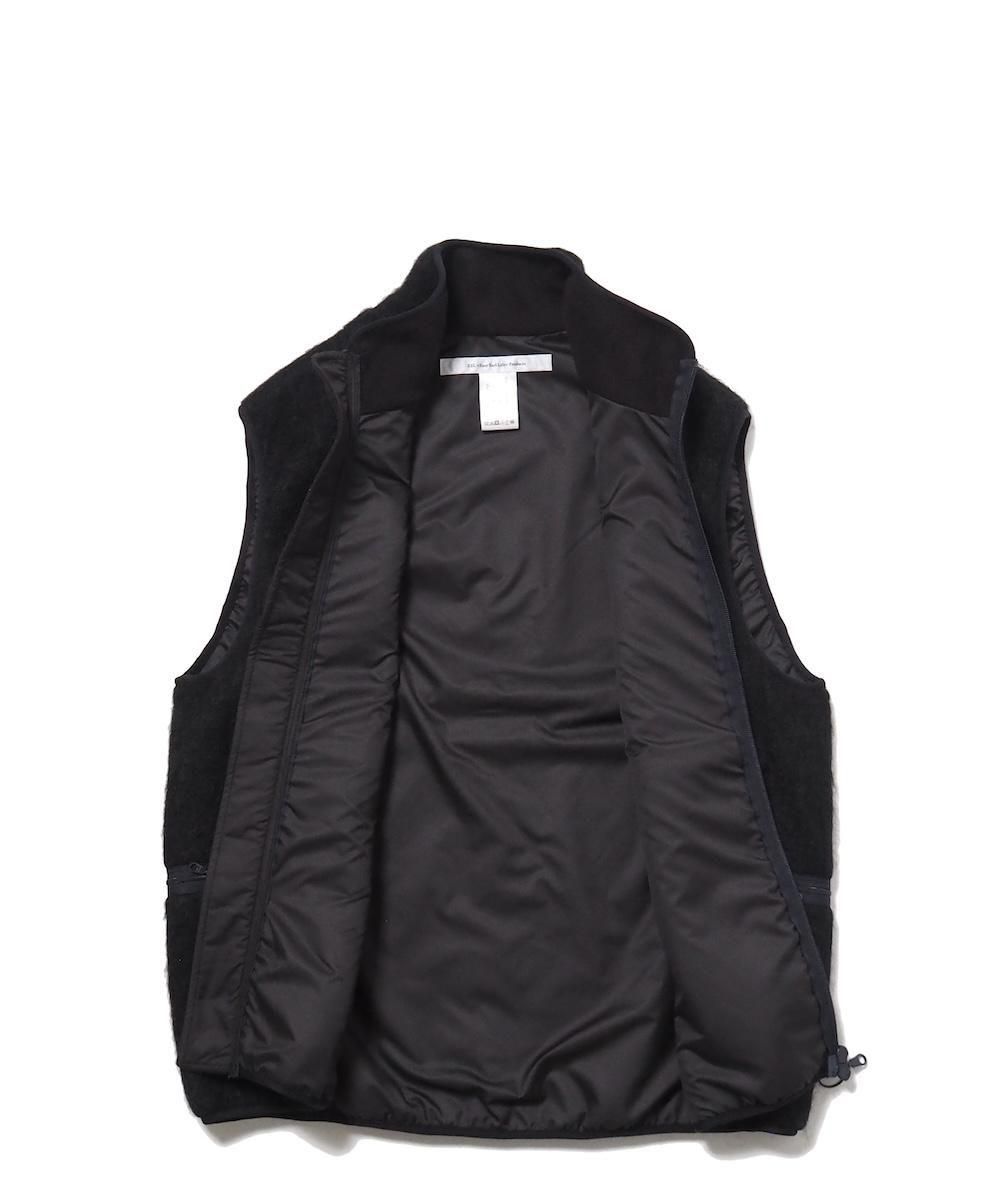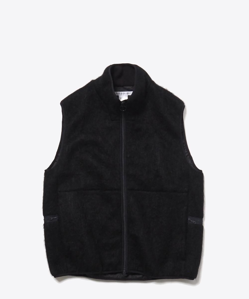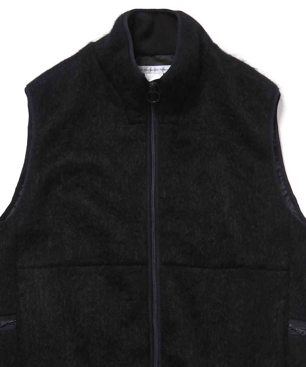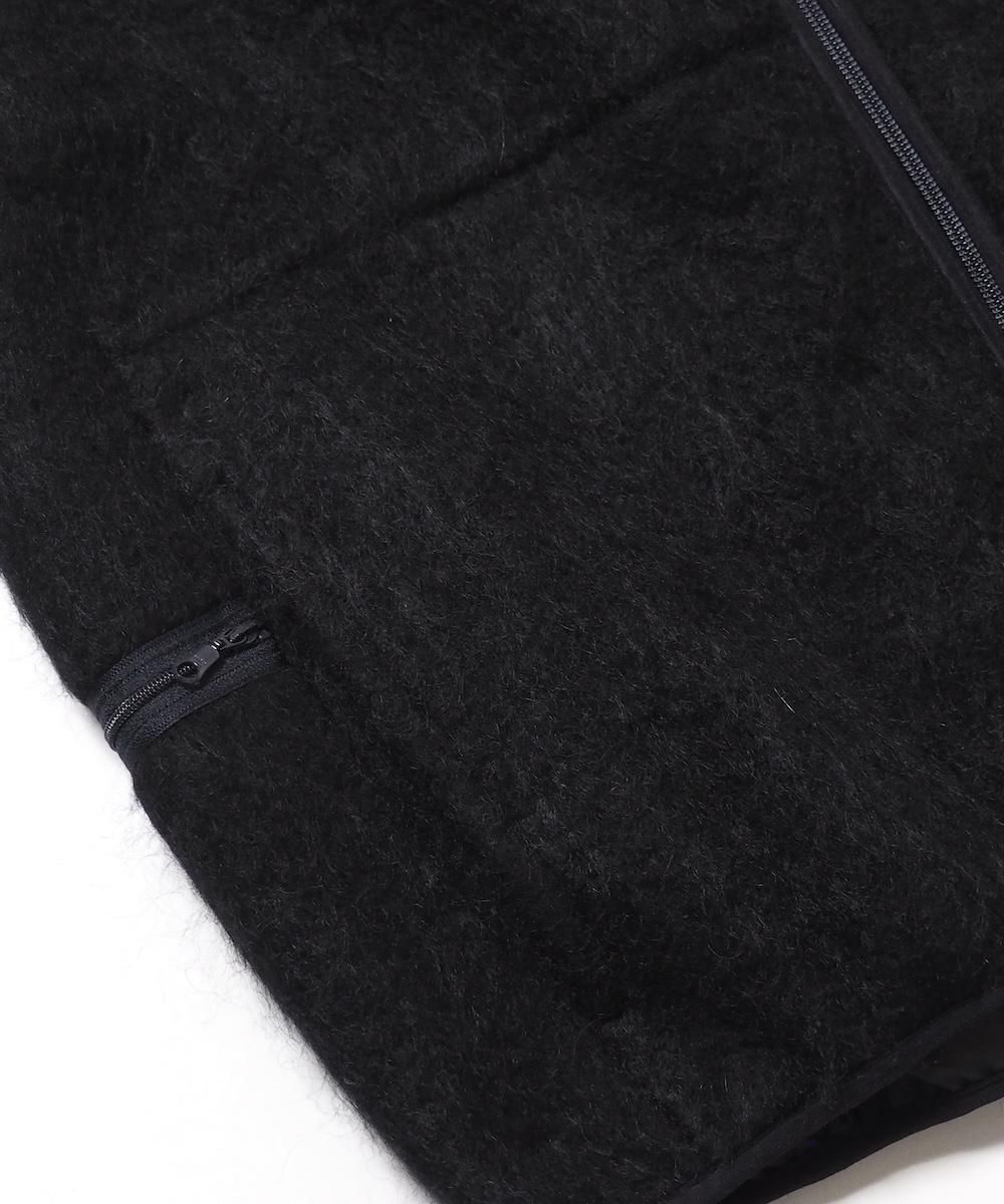 毛足の長いシャギーニットを使用したジップアップベスト。 裏地を付けて防風性・防寒性に優れた機能アイテムながら、表地をシャギー素材にすることでファッション性のある見た目となっています。 フロントはダブルジップ仕様、フロントにハンドポケット、両サイドにジップ付きポケット付き。