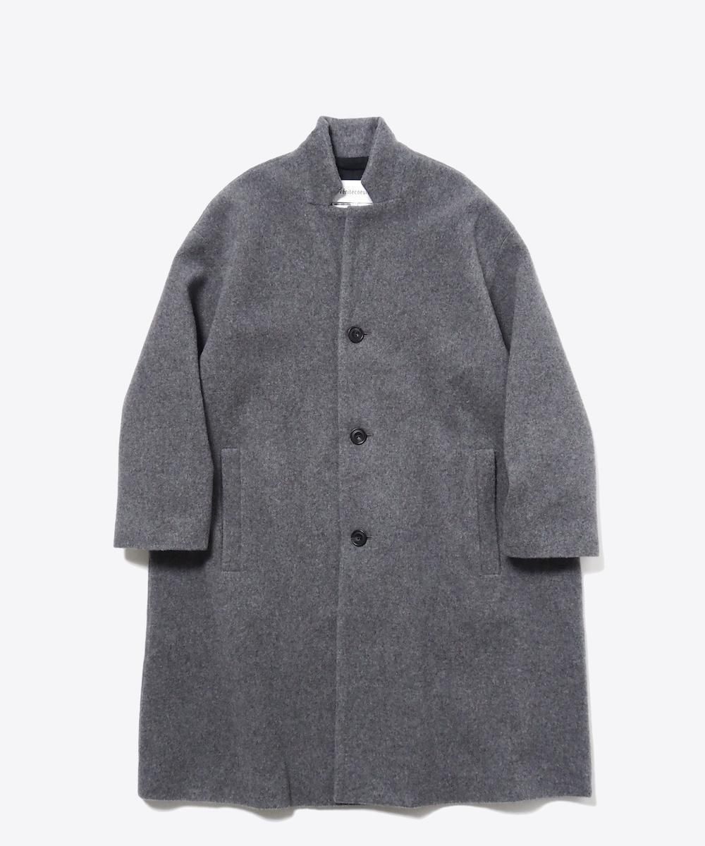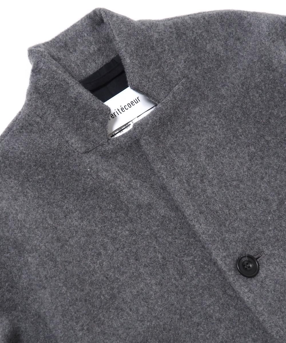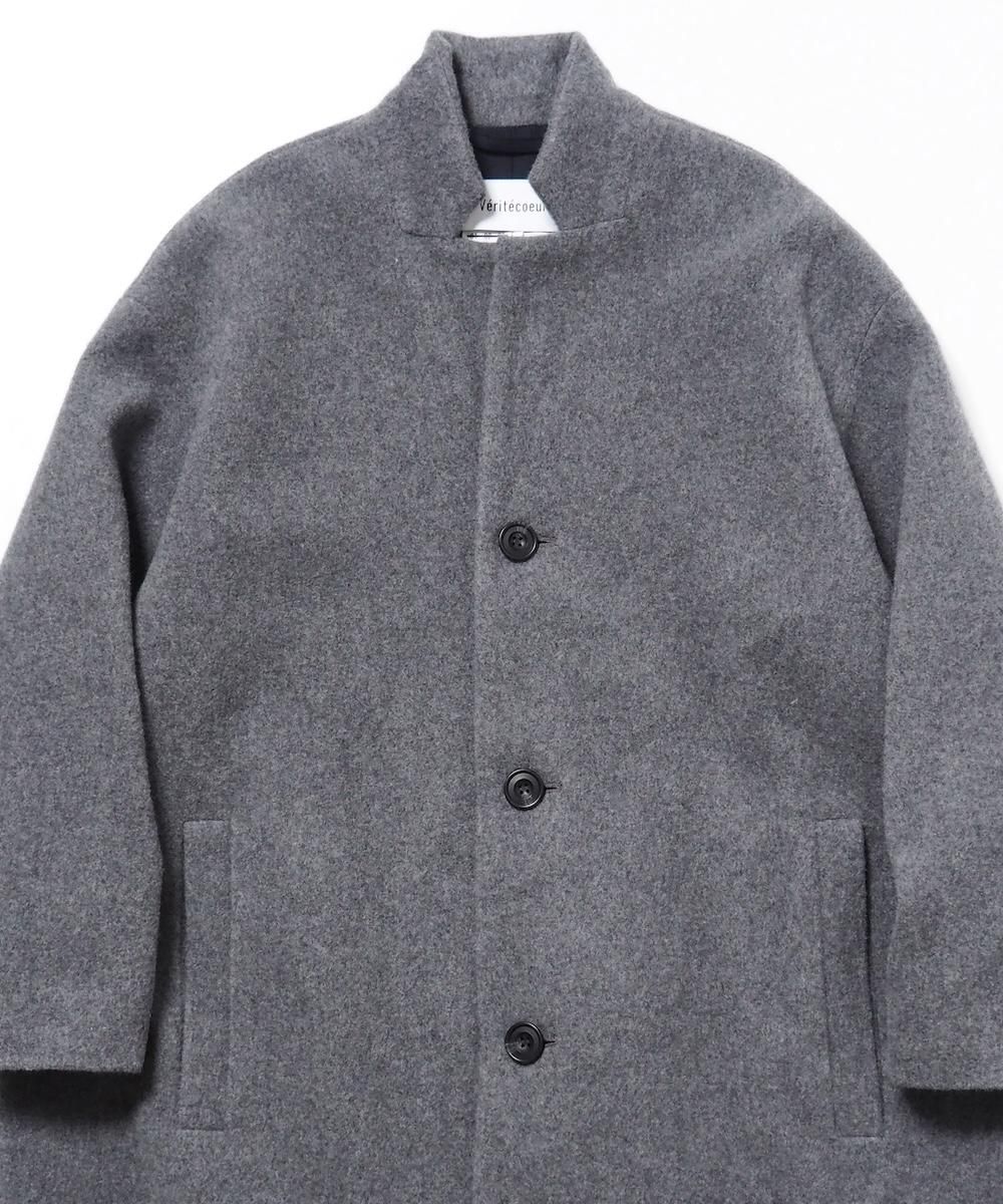 肉厚の圧縮ウールを使用したオーバーサイズのコート。 温かみのある生地感が季節を感じさせる表情に。 肩を落としたゆるさのあるサイズ感で身頃と袖には裏地が付いて袖通しもスムースに、長時間の着用でもストレスを感じさせない作りです。 軽量で高い保温性と実用性も兼ね備え、しっかりとした作りなので長く愛用いただけます。 肌寒い時期のスタイリングの主役となる、ヴェリテクール大定番の一枚です。