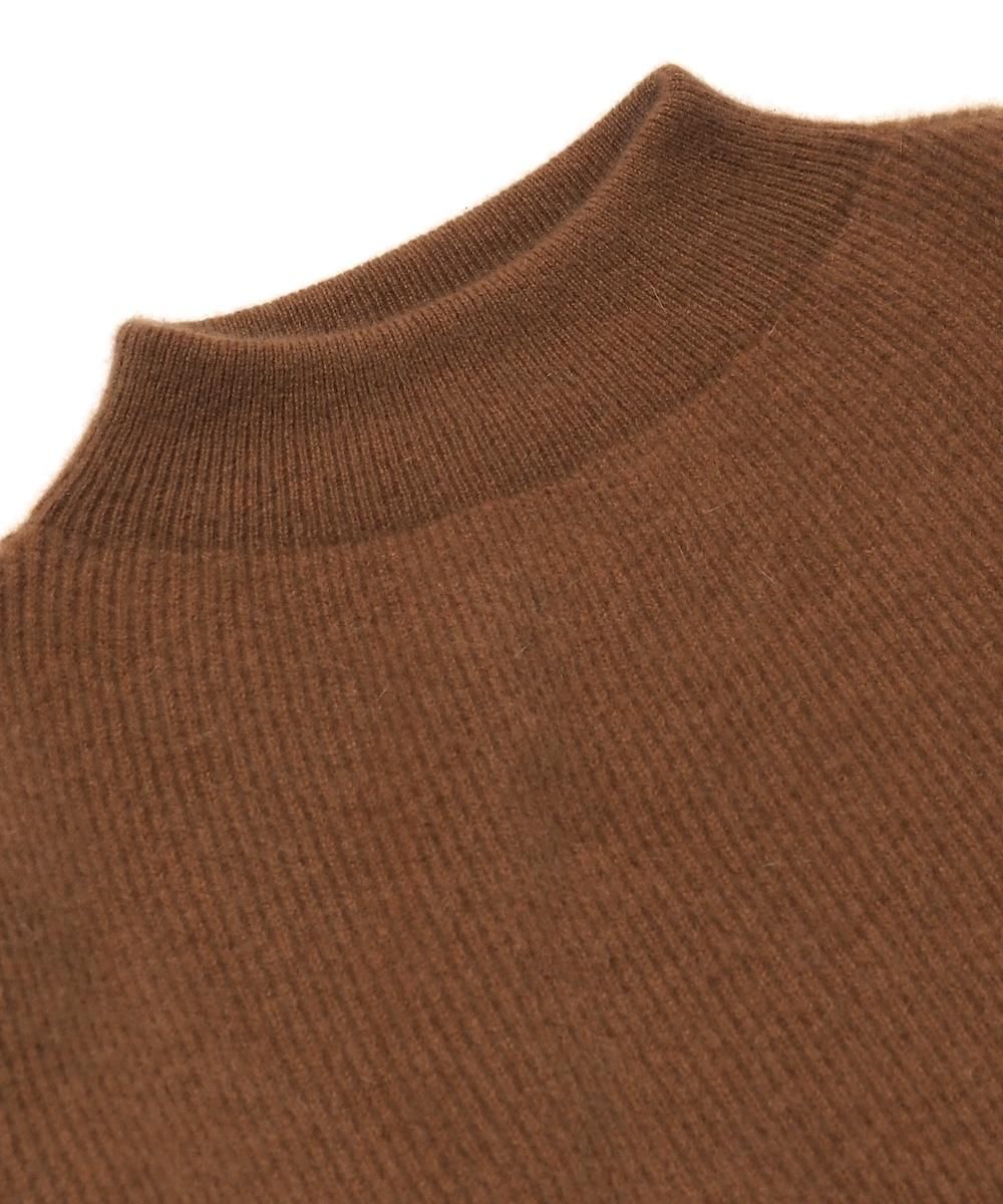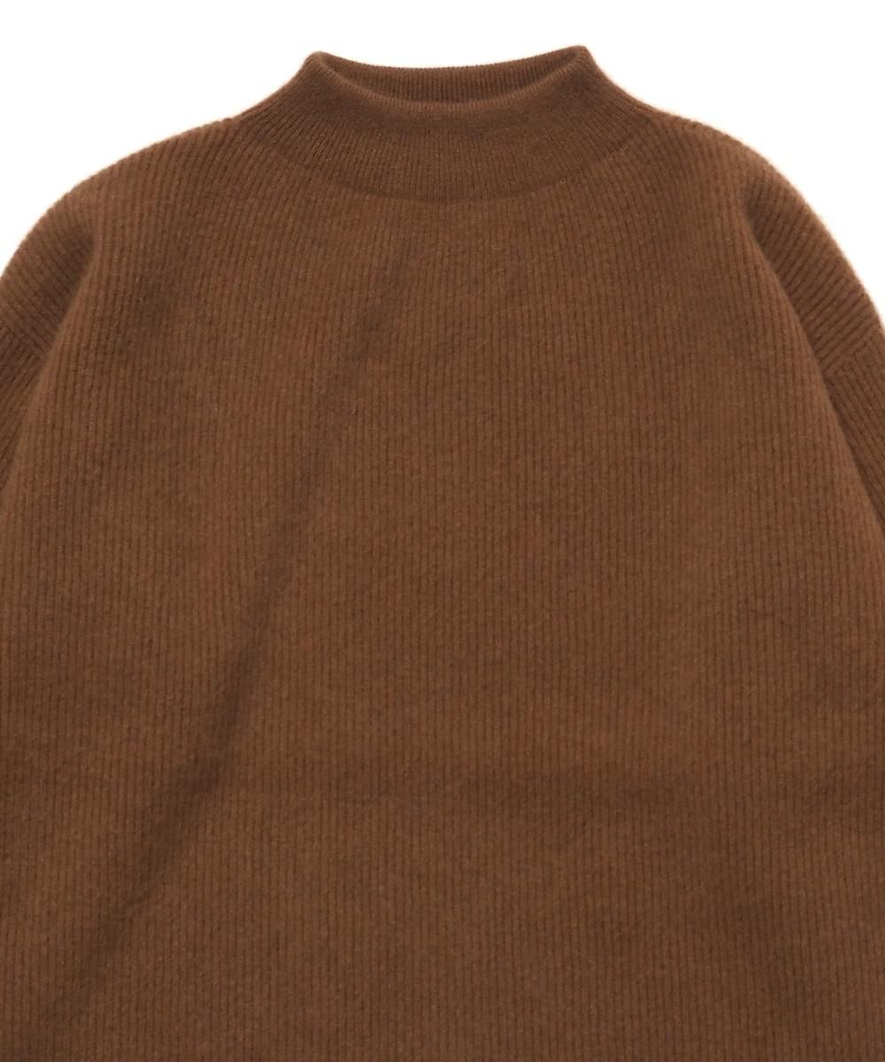 アルランシャンカシミヤにブルーフォックスをブレンドしたBATONERオリジナル糸を使用したモックネックプルオーバー。 ブルーフォックスならではの上品な起毛感とカシミヤの柔らかさが特徴のシリーズで、滑らかでとても軽くふっくらとした質感となっています。 リラックスシルエットのセットインスリーブ。 袖丈は長めで袖は折り返しても着用していただけます。 裾はリブがなく、袖はリブありで袖幅のボリューム感をより引き立たせたデザインです。
