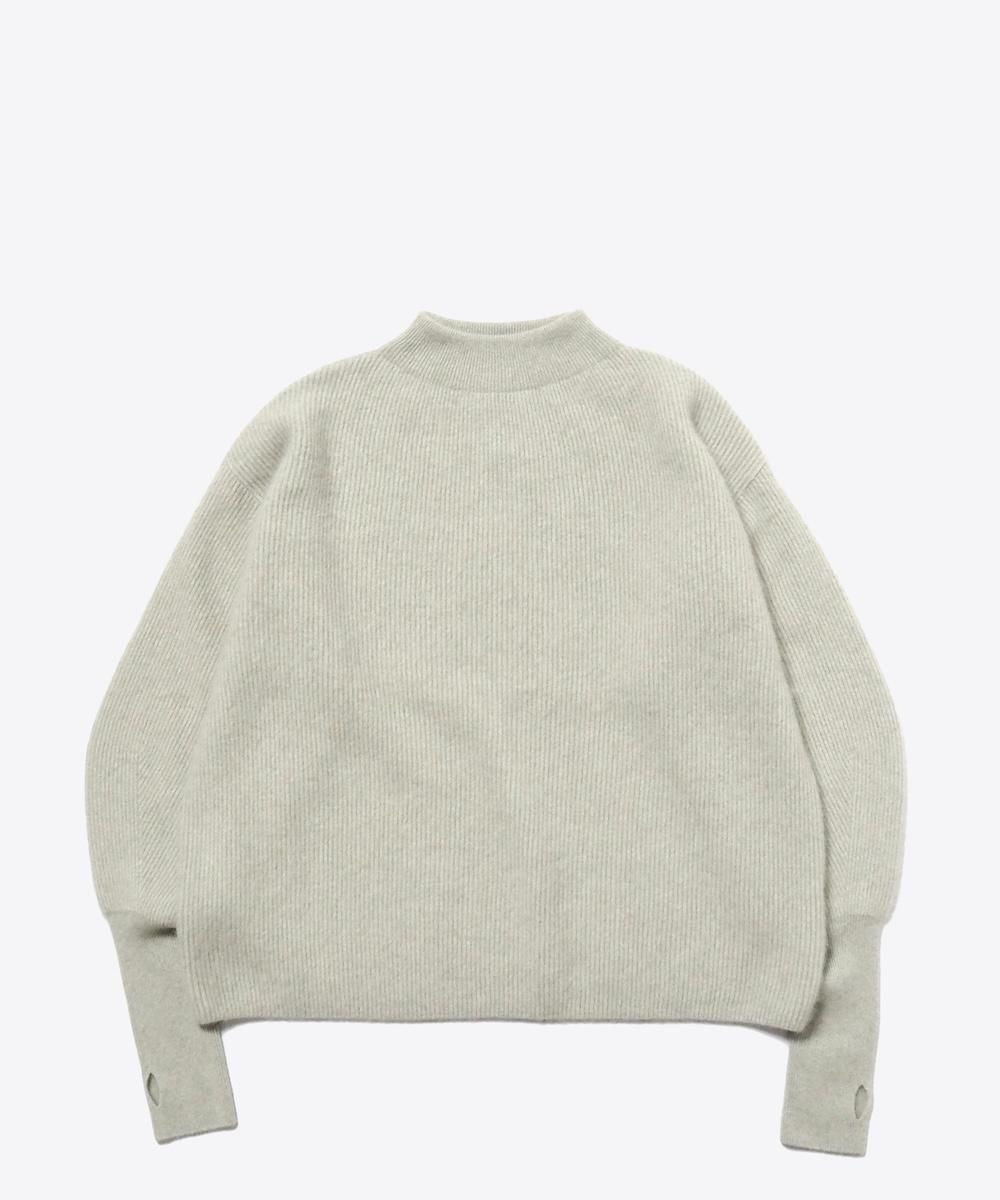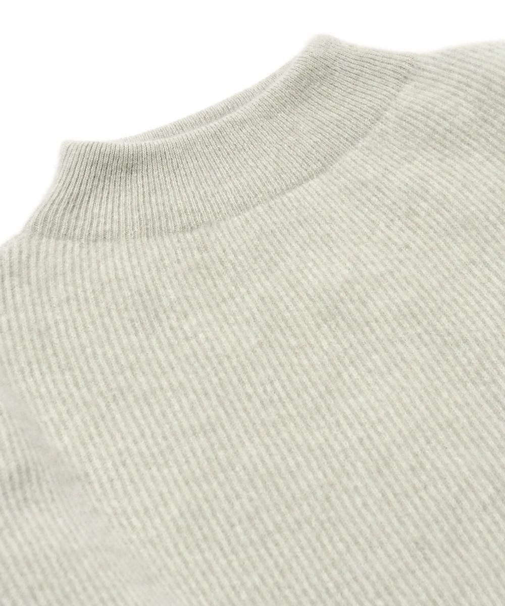 アルランシャンカシミヤにブルーフォックスをブレンドしたBATONERオリジナル糸を使用したモックネックプルオーバー。