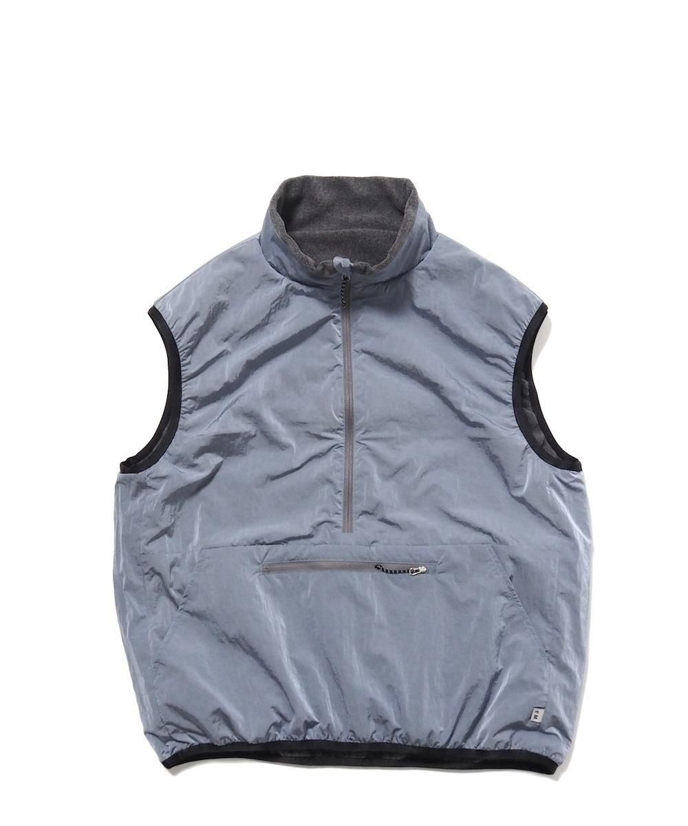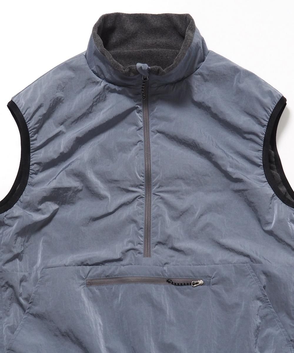 リバーシブルで使えるプルオーバーベスト。 片面には保温性に優れたポーラテックのフリース、反対面には上品な光沢感が特徴で防風性のあるナイロン生地を使用。 軽量で保温性に優れ、幅広いスタイリングで使い勝手の良い機能的なアイテムです。