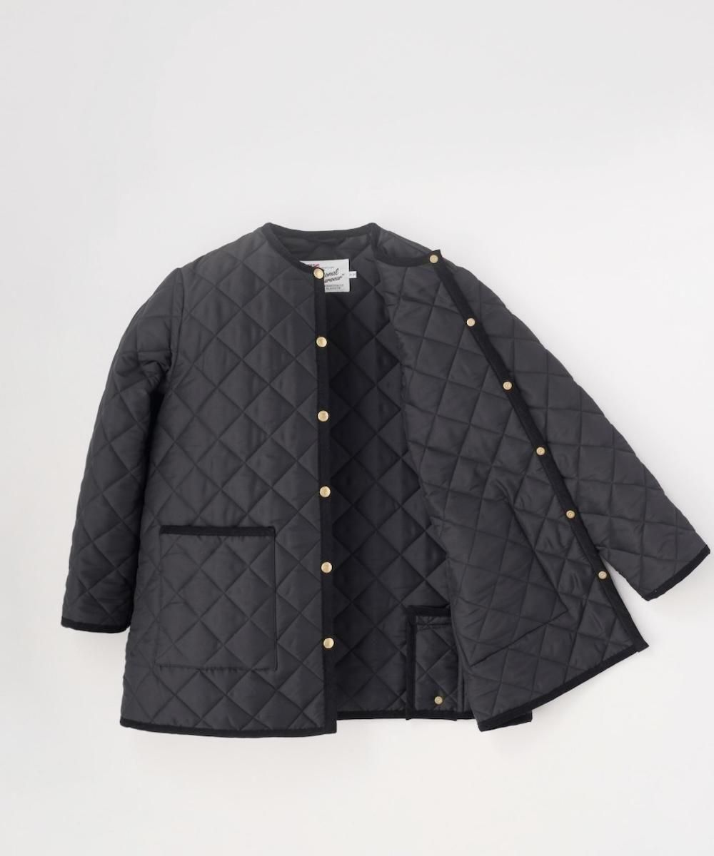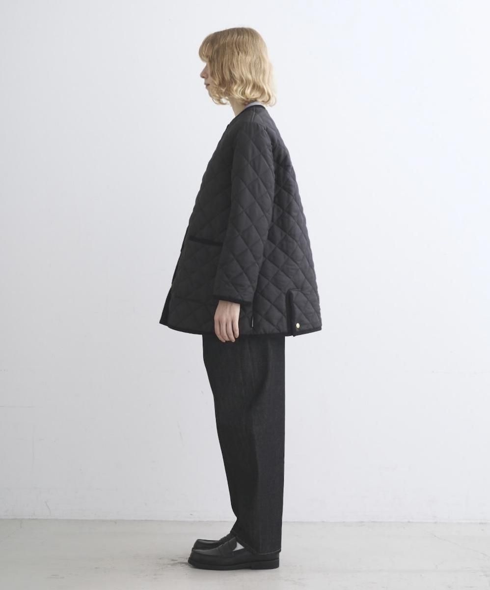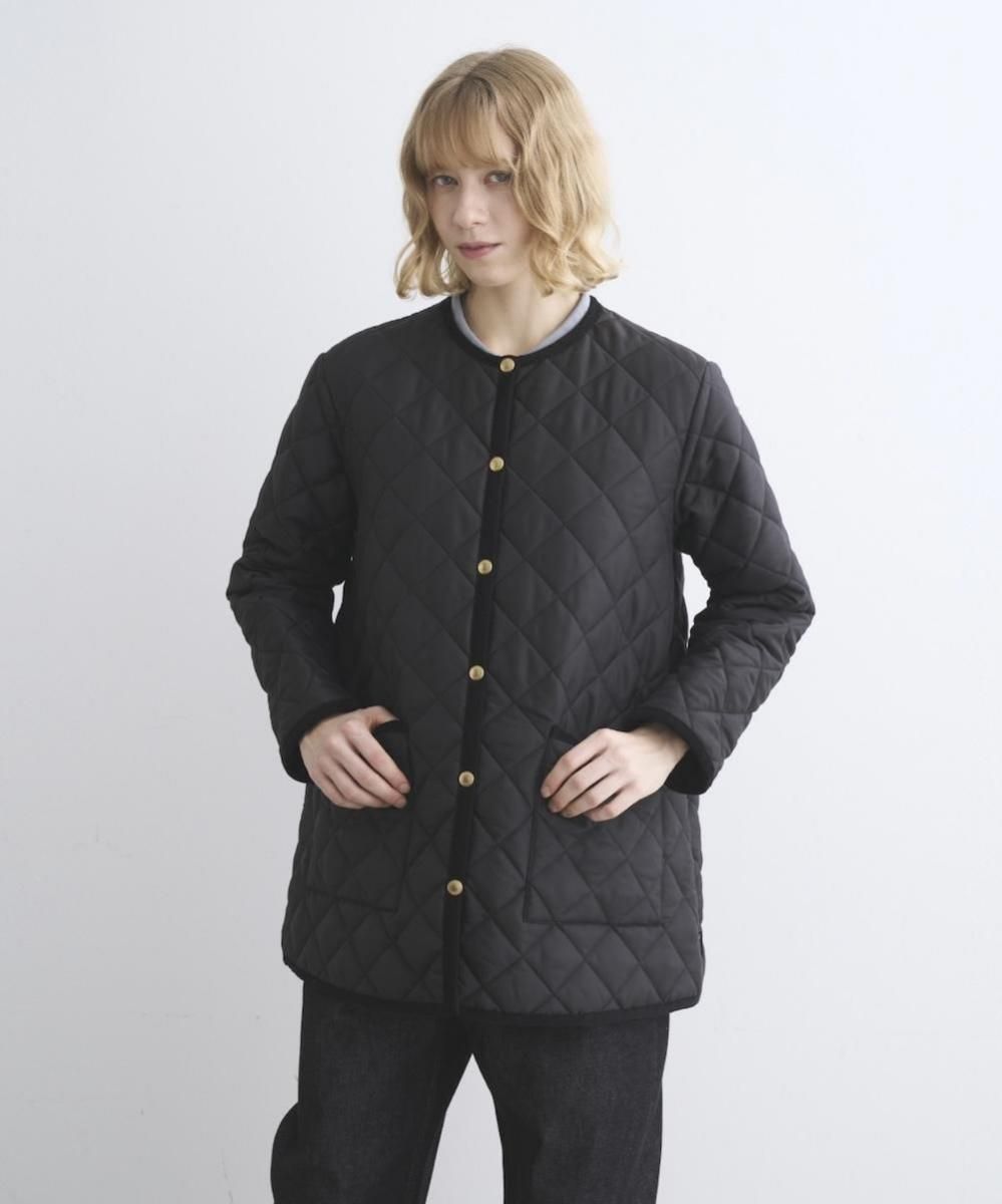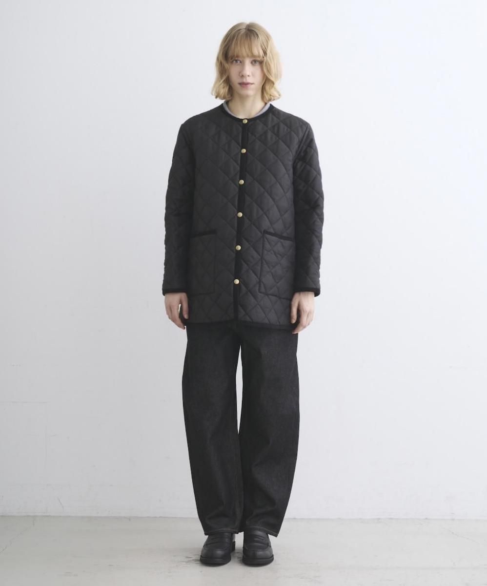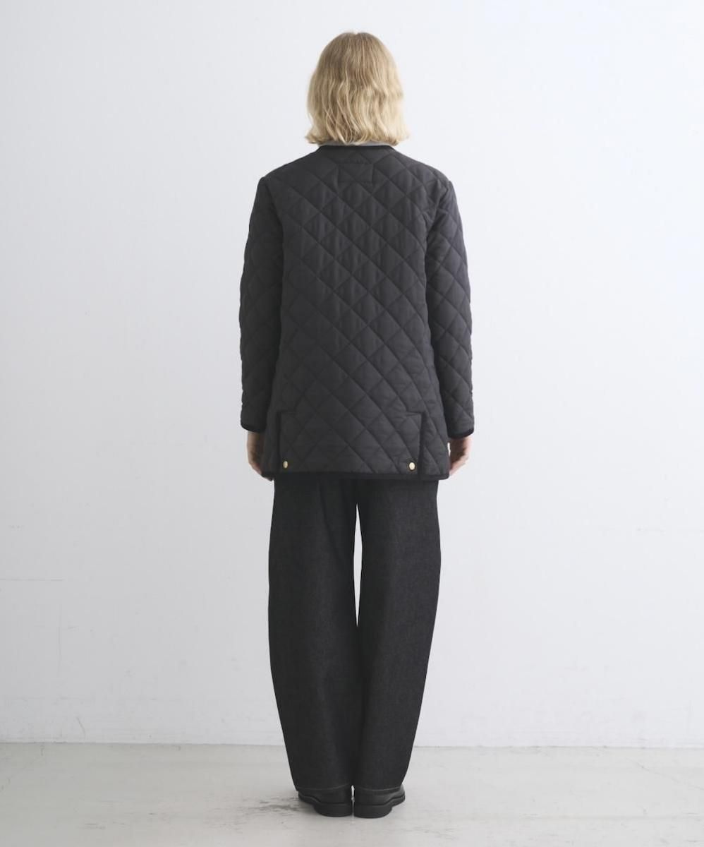 ブランドを代表する定番のノーカラーキルティングジャケット。