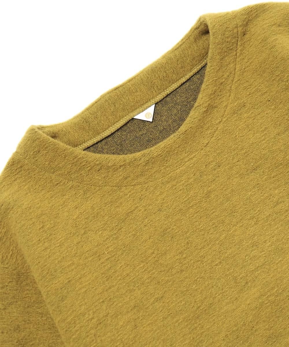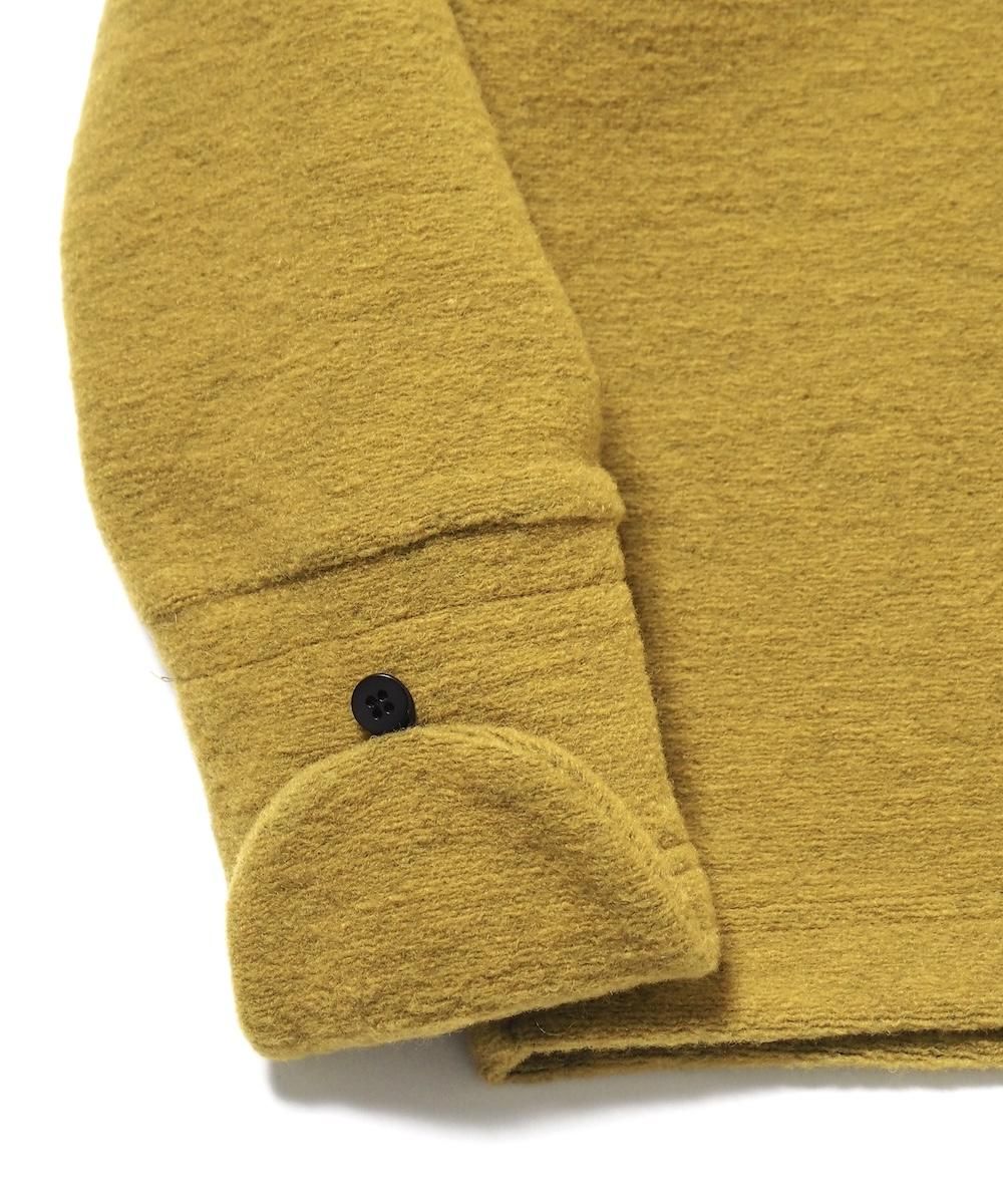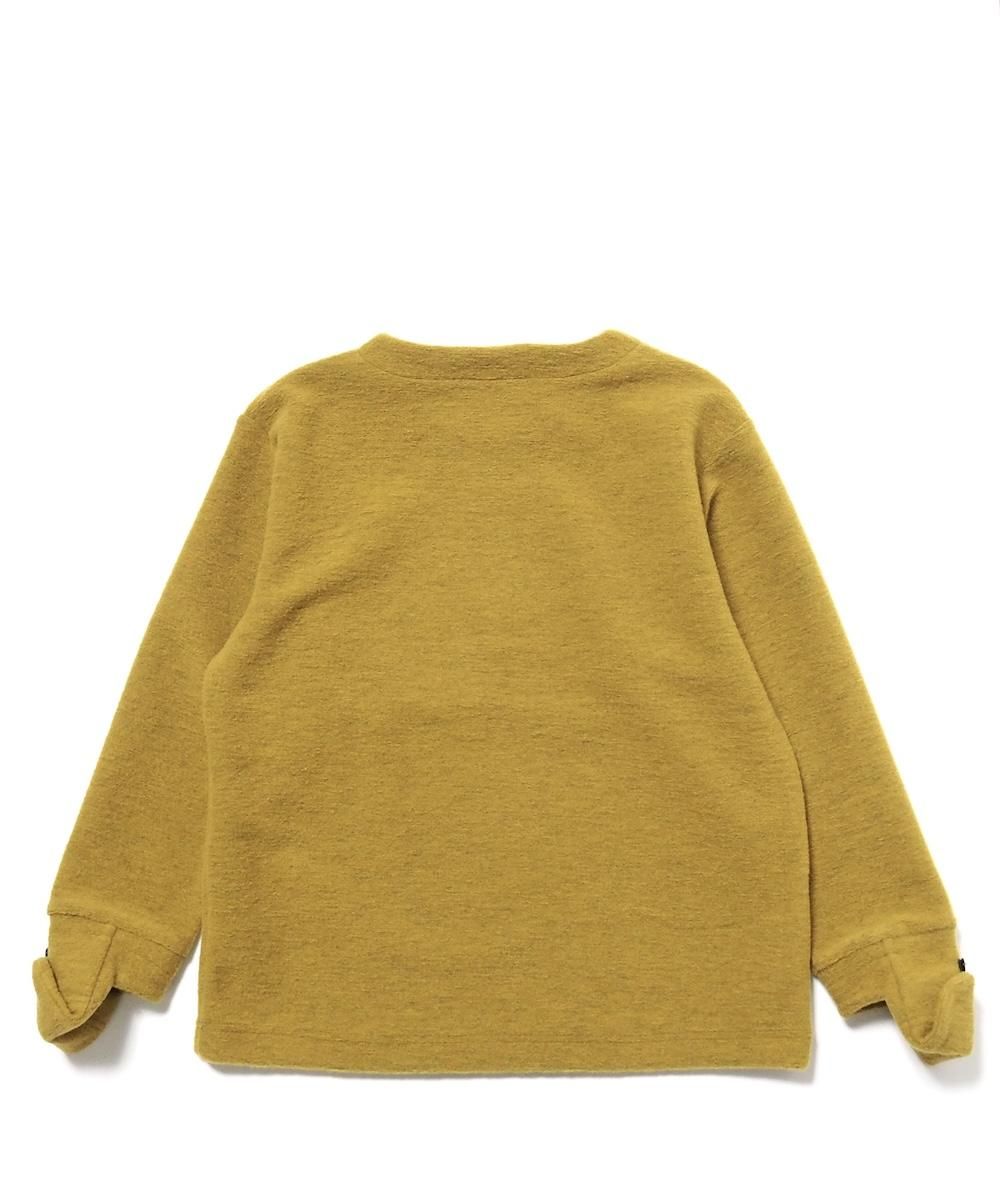 袖口にミトンを付けたようなデザインがユニークなプルオーバーニット。 ふくらみのある縮絨ニットを使用し、素朴で暖かみのある表情がポイント。 程良いゆるさのあるサイズ感ですので、一枚でも、重ね着でも着回しできます。 ミトンは折り返すことで収納可能です。