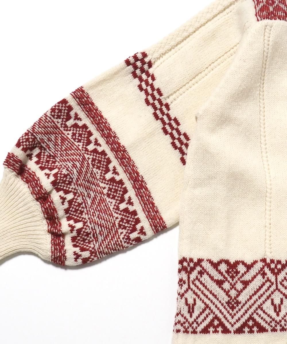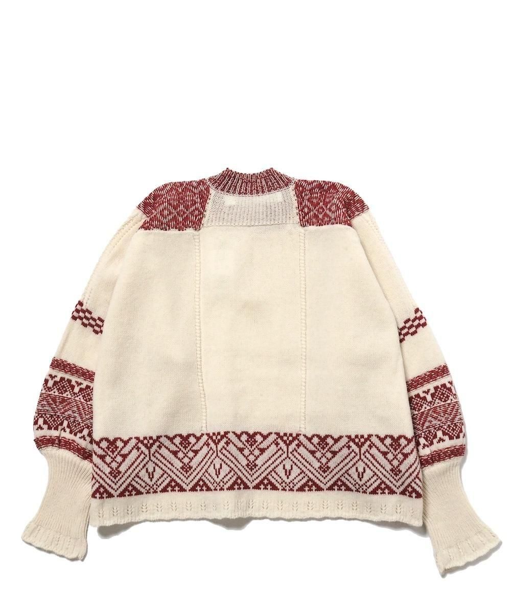 異なる編み地で柄模様を表現したニットブラウス。 原毛は寒暖の差が激しくスーパーファインウールの産地として知られているオーストラリア東部のニューサウスウェールズ州産のラムズウール。 ラムズウールはメリノウールの中でもよりソフトな生後6ケ月までの毛を使用しています。 子羊は、一生で一度しか羊毛を採取できません。 生後3〜5か月の子羊はスケール(人間の毛髪で言うキューティクル)やクリンプ(縮れ)が未発達なので、 極度に柔軟で微細なため最終のニット製品に非常にソフトな感触を与えます。 また一般のウール素材と比較すると美しい発色の良さも特徴です。