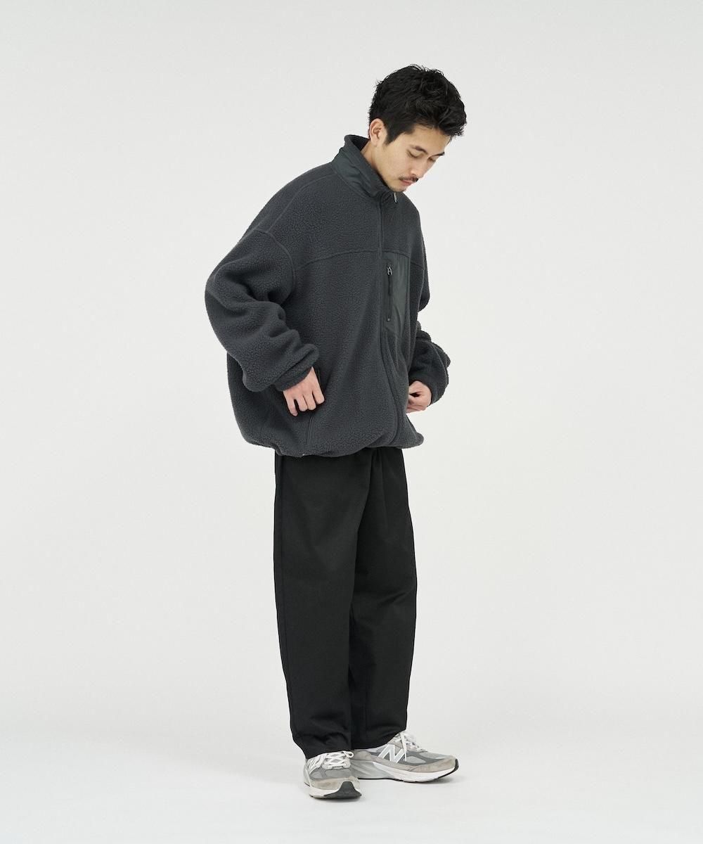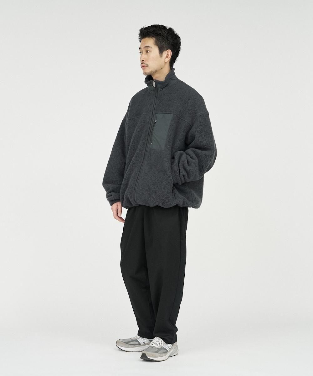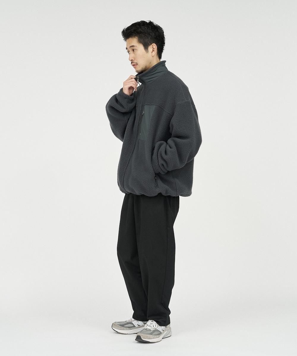 アウトドアブランドの90'Sのボアジャケットから着想を得た、スタンドカラーのジップアップジャケット。 柔らかくクッションのような感触のポリエステルのボアフリース素材を採用。 軽量ながら保温性も兼ね備えており、インナー次第で秋口から真冬まで幅広いシーズンでの着用が可能。 胸元と首元のナイロン生地の切り替えがアクセントになり、コーディネートに遊び心をプラスします。