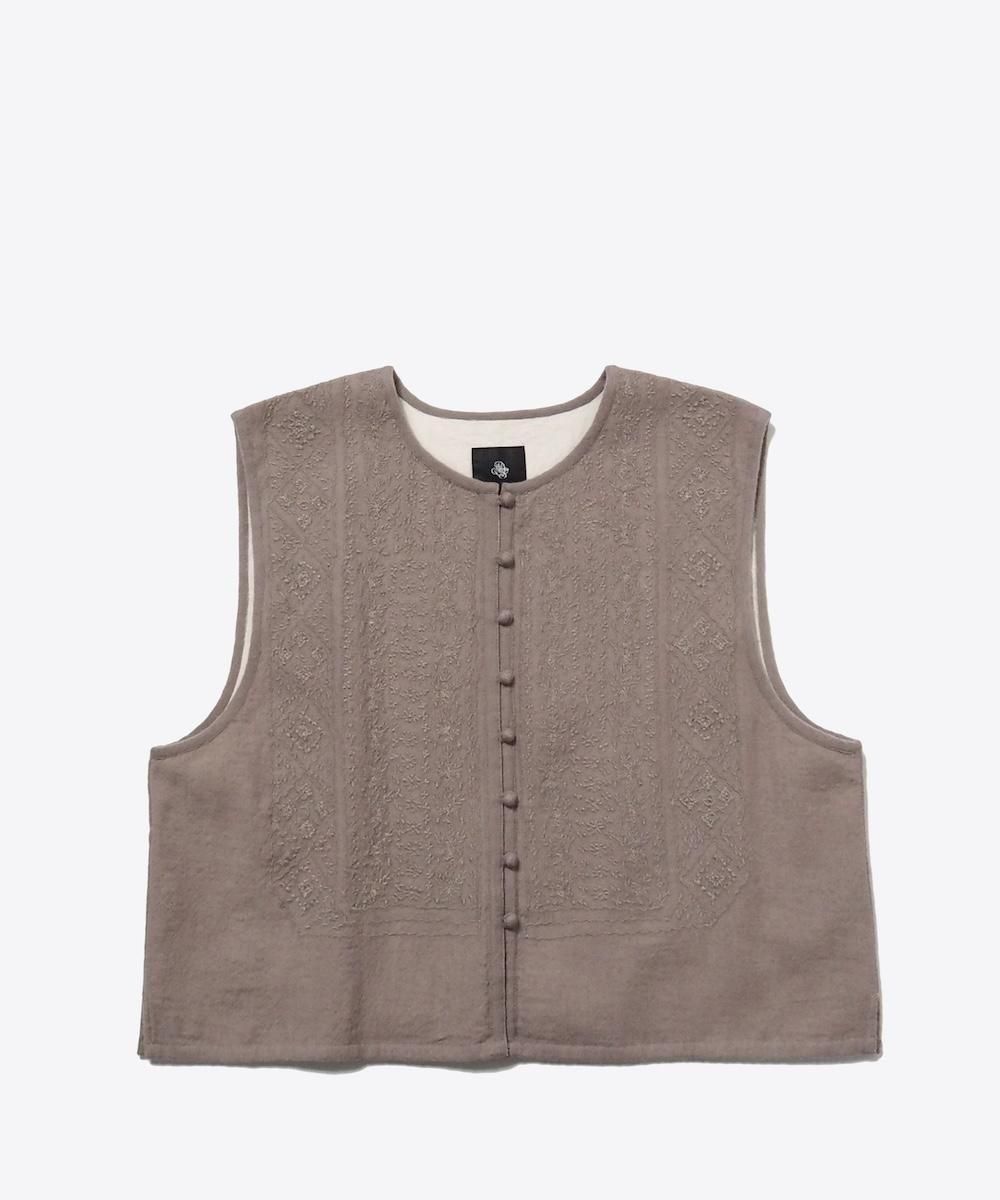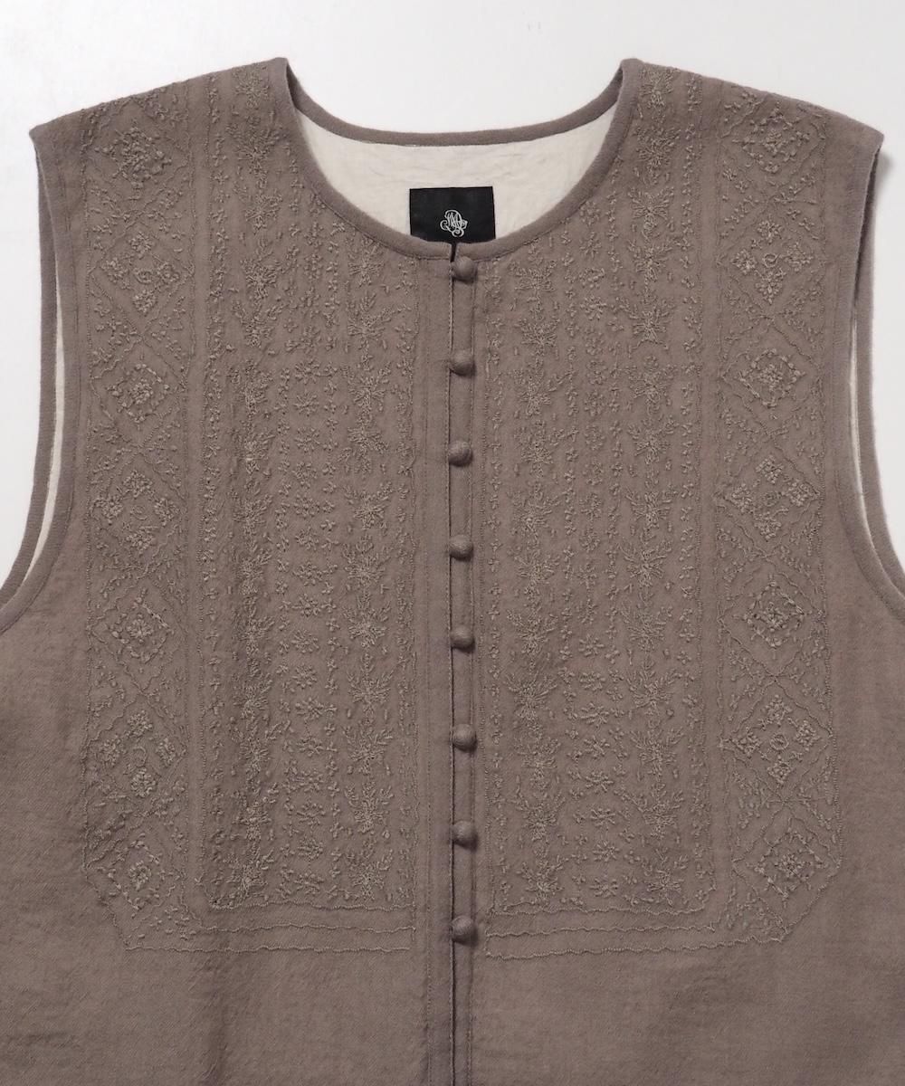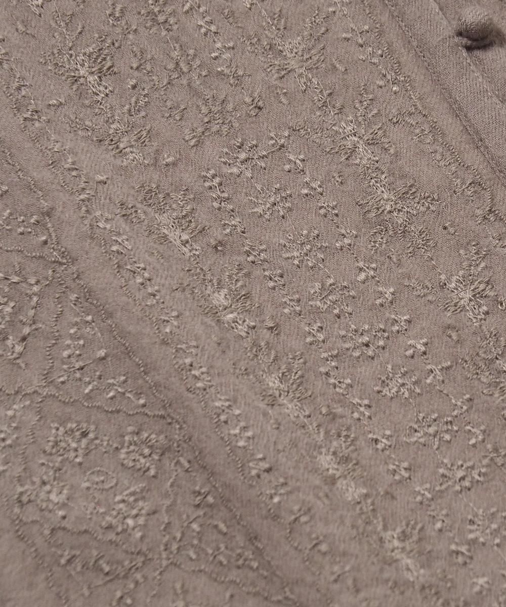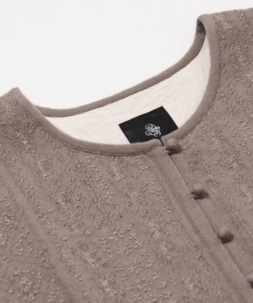 生地と同色の糸を使用した刺繍は、コンピューターミシンではなく人の手で生地を動かしながら施されており、