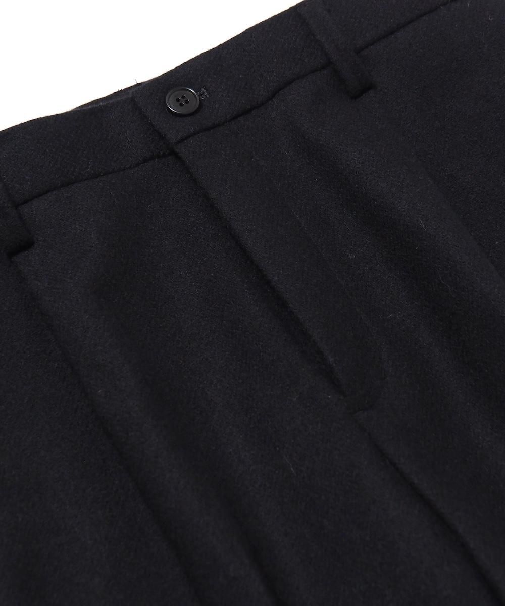 ゆとりを持たせたウエスト周りから、裾にかけて流れるような綺麗なラインを描くテーパードシルエット。