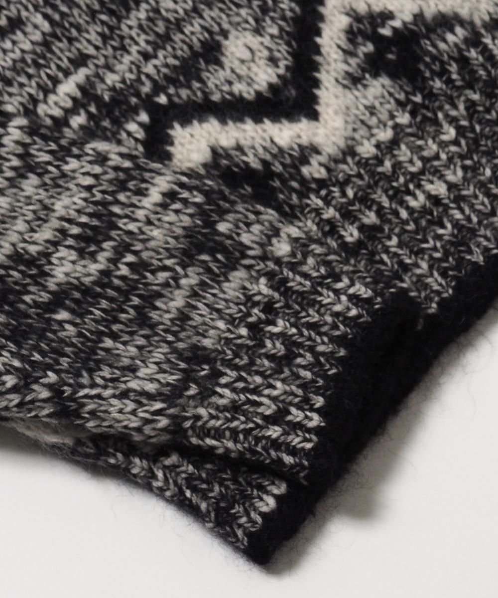 3種類の天然素材をブレンドし、太番手のスラブヤーンをミックスしたノルディックニット。 モヘア・アルパカの起毛感は保ちつつ、スラブヤーンならではのランダムな凹凸感のある表情が特徴です。 身幅はやや広め、すっきりとした丈感で、やわらかい雰囲気に加えソリッドな印象も与えるシルエット。