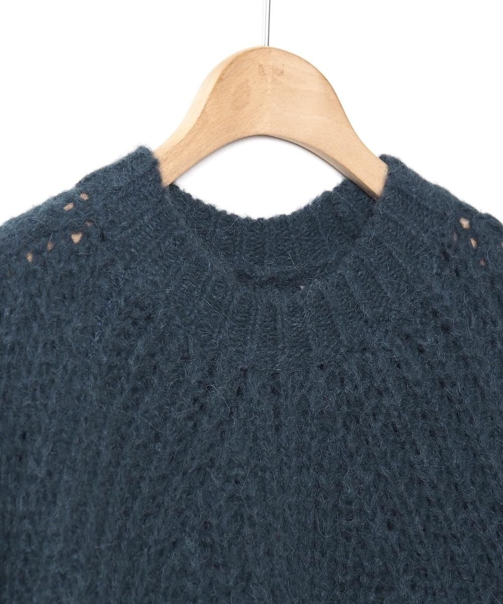 とても柔らかく風合いのあるアルパカに、メリノウールをブレンドして編み上げた新作のシグネチャーニット。 この糸本来の繊細ながら豊かなふくらみ感のある風合いを、程良い存在感のある編地で仕上げられています。 ローゲージながらも軽量で、ファインアルパカの保温性も魅力の一枚です。