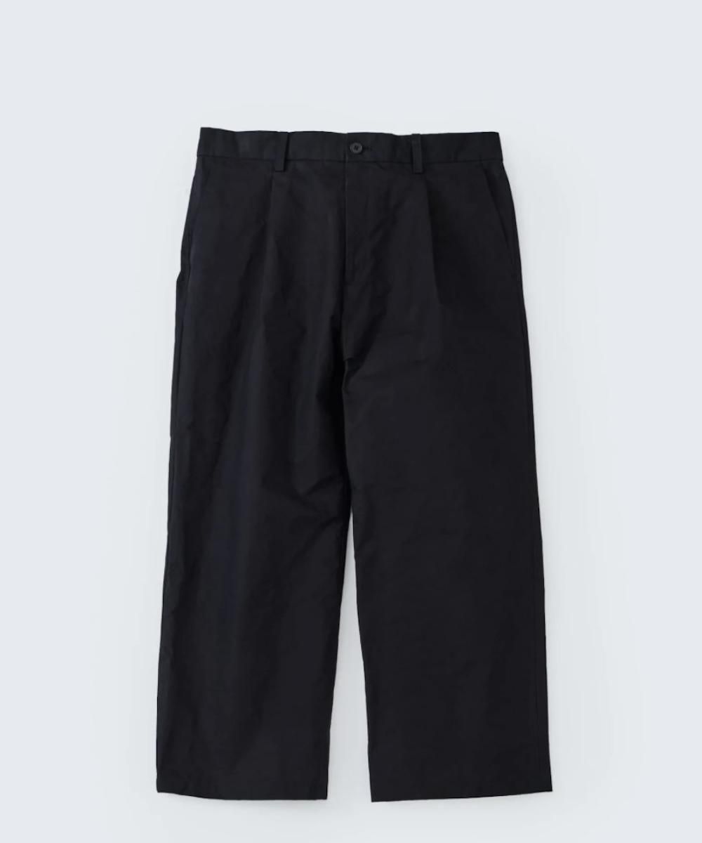 新型のストレートパンツは、インタック仕様で上品な印象に仕上げました。装飾を極力そぎ落とし、裾に溜まりが出ないようレングスを丁寧に調整しています。革靴、スニーカー、サンダルなど、足元を選ばず合わせられるリラックスシルエットが特徴です。YKKジッパーと本水牛ボタンを採用し、見えない部分の上質さも大切にしています。