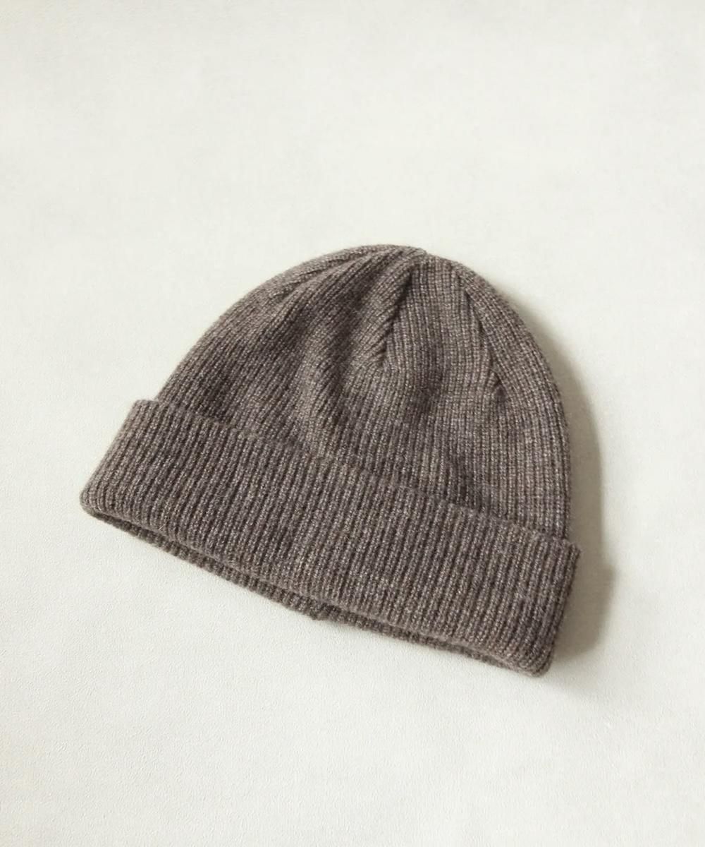柔らかく肌触りの良いカシミヤニット帽。 二枚仕立てにすることで保温性とフィット性も高めています。 トップ部分をハギ仕様にし丸みのあるシルエットに仕上げています。