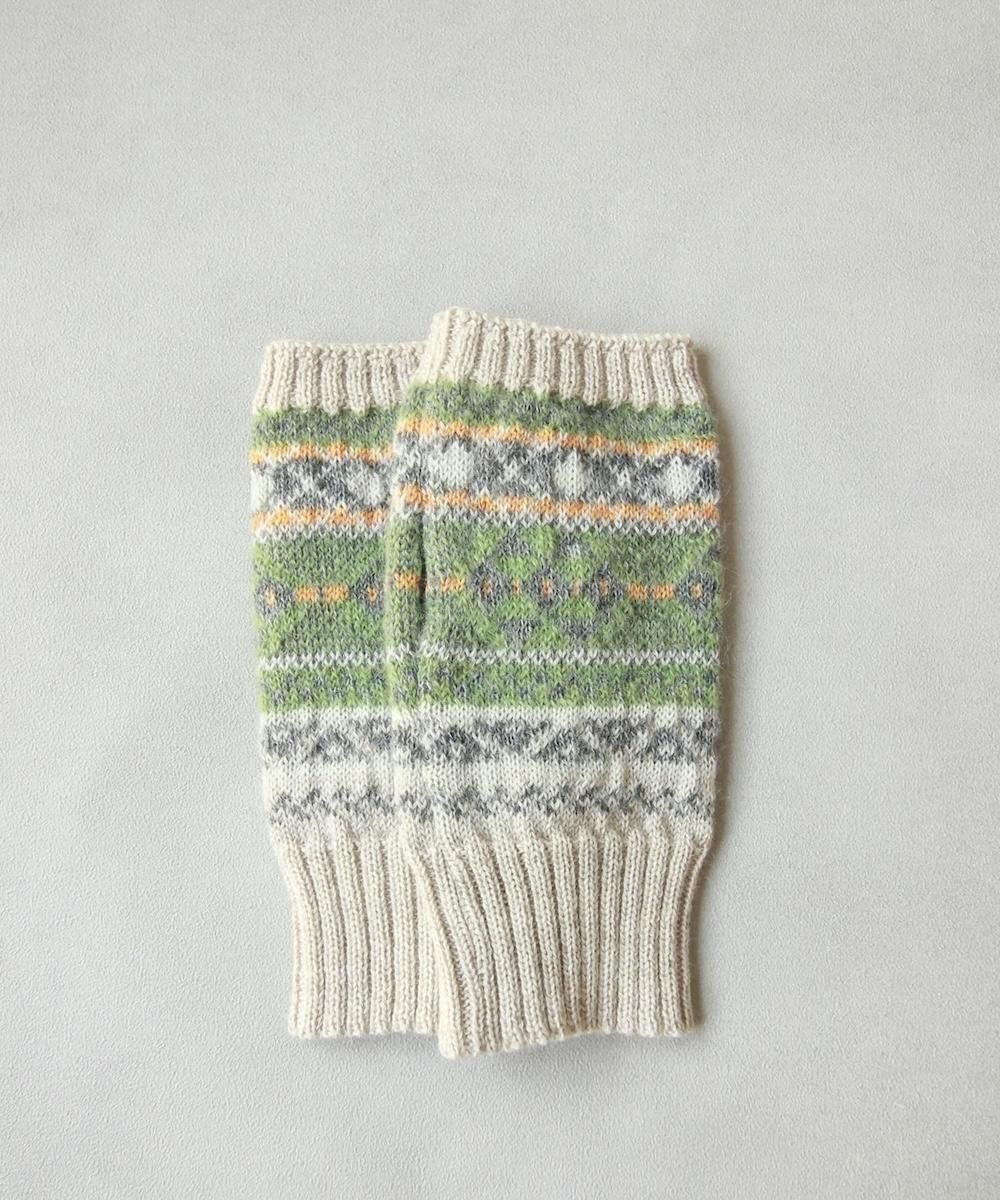 配色のバランスに拘ったフェアアイル柄のアームウォーマー。 部分的にモへヤを使い柄部分を柔らかな風合いに仕上げ、使用するたびに起毛感が増していきます。 手首側を伸縮性のあるリブ仕様にすることで袖から侵入する冷たい空気から守られるよう、設計しています。