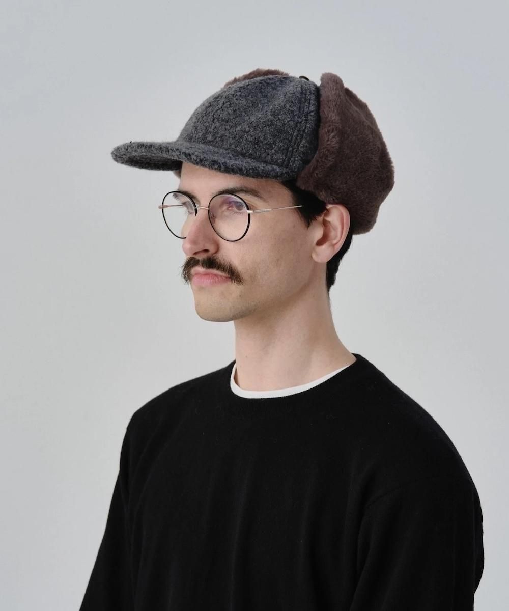 ボリュームのある重厚なファーが上品なイヤーフラップキャップ。 程良い深さと、幅広で少し長めのバイザーにより安定した被り心地です。 イヤーフラップには滑らかな肌触りのフェイクファーを合わせ、防寒性を高めました。 サイズ調整リボン付き。
