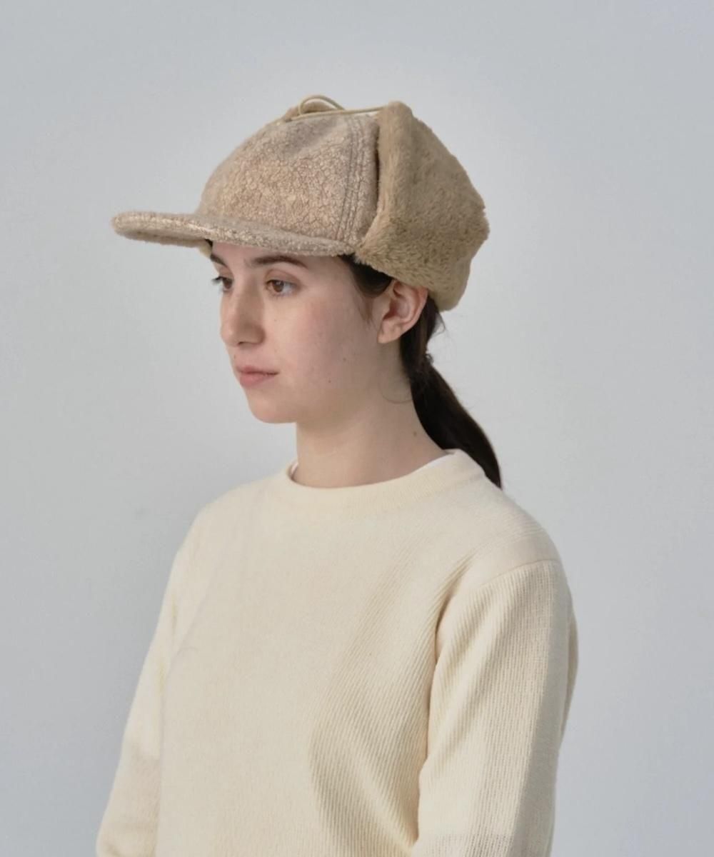 ボリュームのある重厚なファーが上品なイヤーフラップキャップ。 程良い深さと、幅広で少し長めのバイザーにより安定した被り心地です。 イヤーフラップには滑らかな肌触りのフェイクファーを合わせ、防寒性を高めました。 サイズ調整リボン付き。