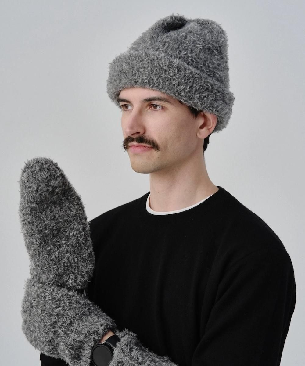 程よい弾力感があり、ボアのような表情のニット帽。 丈夫な毛質の英国羊毛と、南米ウールをブレンドしたカール糸をシンプルに編み立てました。 見るからにあたたかなボリュームのあるシルエットに仕上がりました。